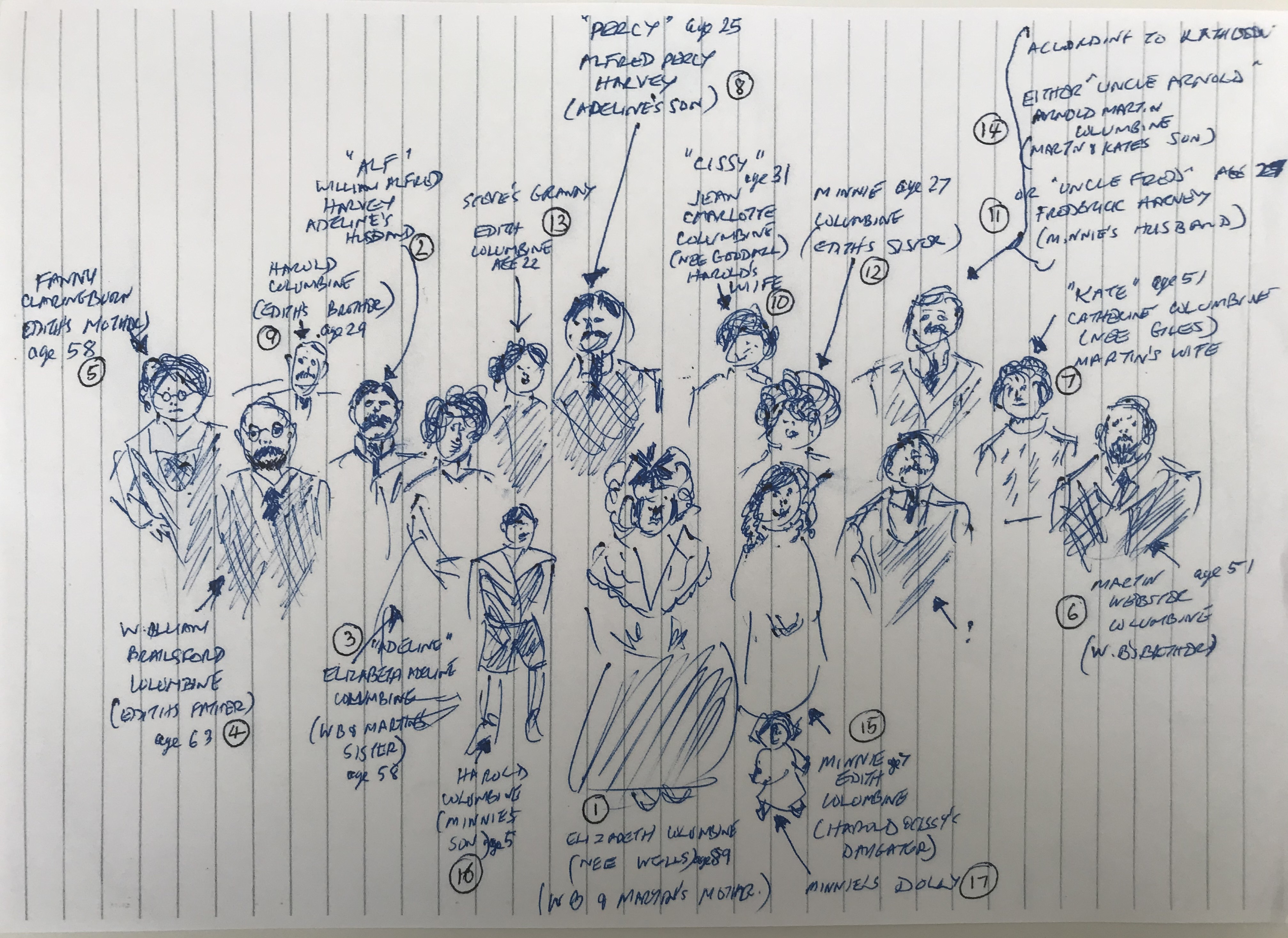 Front row centre, flanked by the two children, is Elizabeth Columbine (nee Wells), widow of John senior.