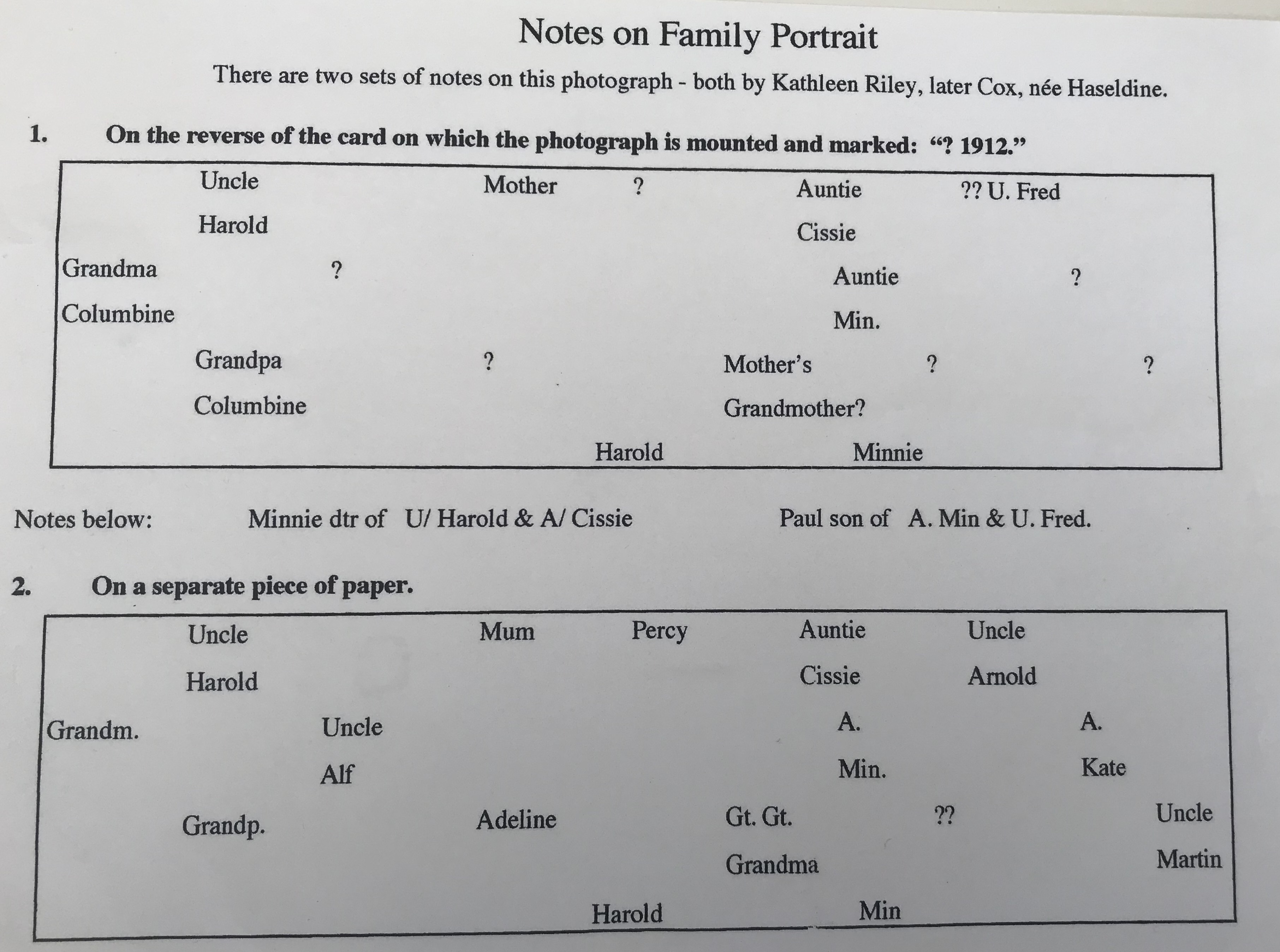 Both were compiled by Kathleen Riley, later Cox, nee Haseldine, the great grand-daughter of John Columbine senior and thus the grandniece of Elizabeth Adeline.