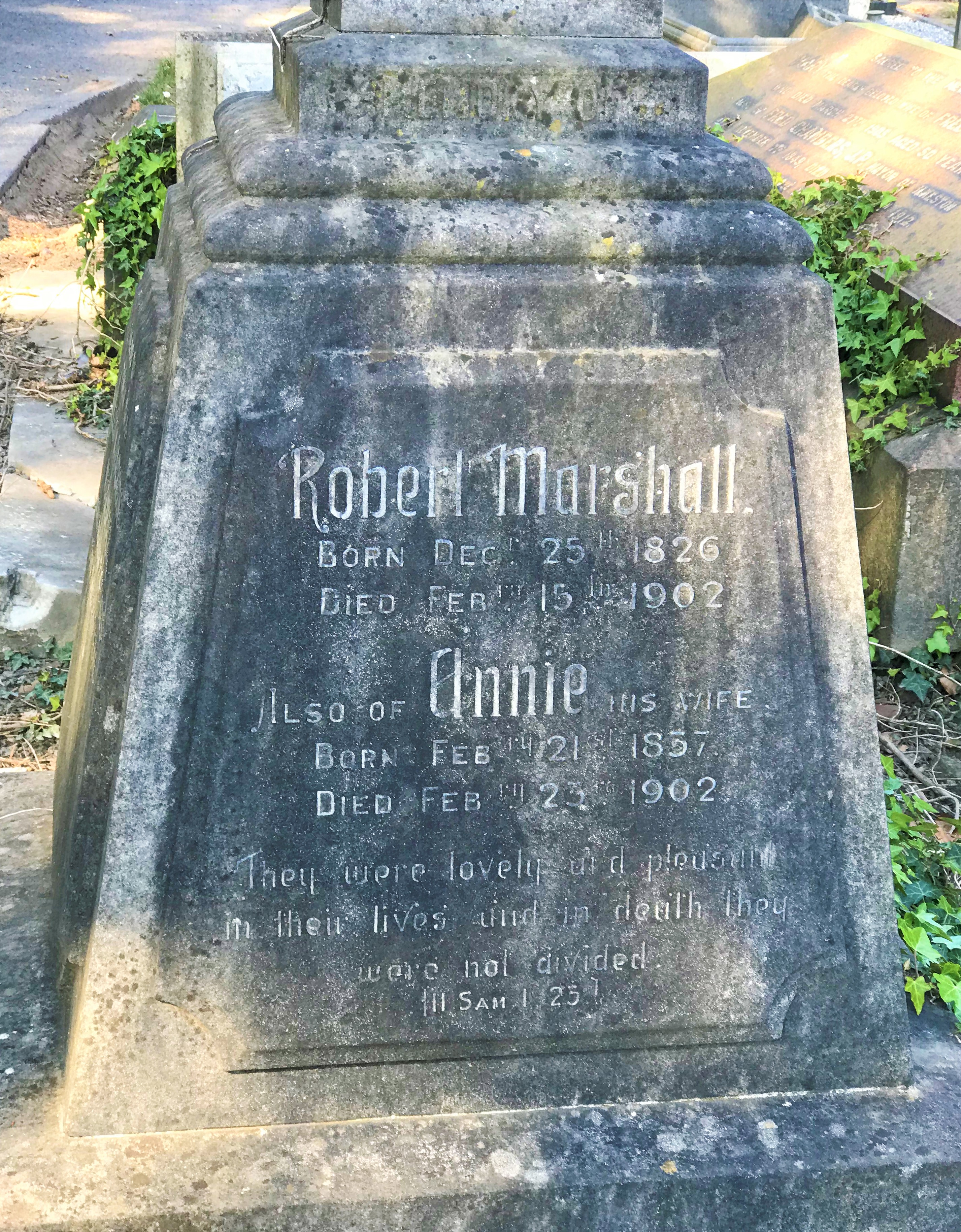 Born on Christmas day 1826, Robert Marshall was the youngest son of Market Place grocer Thomas and Catherine (nee Jackson).