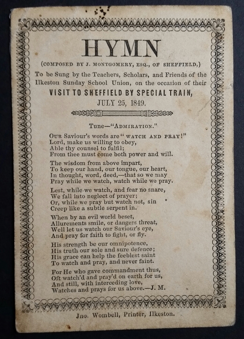 The children connected with the Methodist New Connexion, Independent, General Baptist, and Primitive Methodist denominations, at Ilkeston, Stapleford, and Kimberley, and the surrounding neighbourhoods, to the number of 3000 and upwards, with their teachers, went by train on Wednesday last, on an excursion to Sheffield. As early as six o’clock in the morning, the railway stations began to be thronged, and, in about an hour, the two trains, consisting of about 70 carriages, (including ‘tubs’, as the covered carriages provided would not contain the vast multitude,) were on their way to the ‘smokey town’, where the party arrived soon after ten o’clock. In order to distinguish the little bands, each child wore a ribbon … and, as the whole paraded the streets, the scene was enlivened by many of the children carrying small flags made for the occasion. Visits were paid to the Botanical Gardens, Cemetery, and other places of resort, and refreshments were provided in the school rooms of the different denominations …. The railway directors on this occasion … reduced the fares to the low rates of sixpence for each child to Sheffield and return, and one shilling and threepence each for their teachers...These two items (above and below) are from the Andrew Knighton collection. Andrew adds .. the journey must have been very uncomfortable in the 3rd class open carriages with wooden benches (the tubs) in which they probably made the trip, but I suppose this wouldn’t have been noticed in all the excitement. As they were about to set out, the children would probably have gathered at the Junction station, not the Town station, … and one can imagine the scene as the excited Ilkeston flock assembled on the platforms.