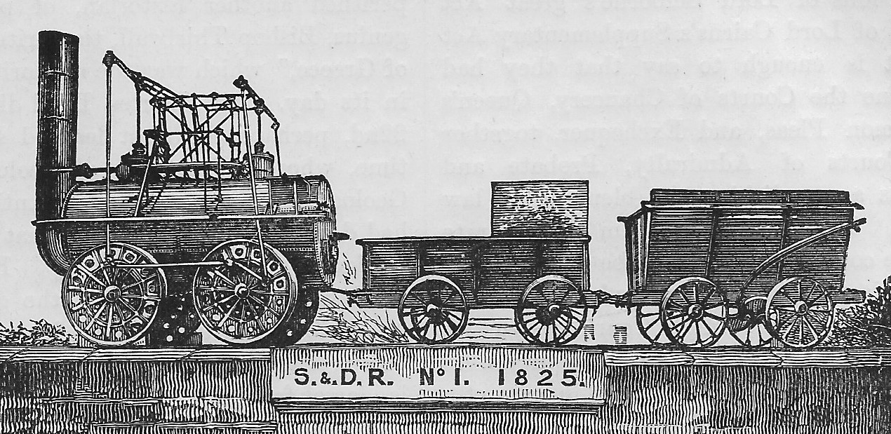 Stephenson’s ‘Locomotion’ on the Stockton & Darlington Railway, 1825, and (right) the first passenger carriage ‘The Experiment’ to carry dignataries on its first journey.