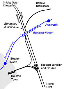 The branch line between Ilkeston Town Station (off left) and Ilkeston Junction (off right)