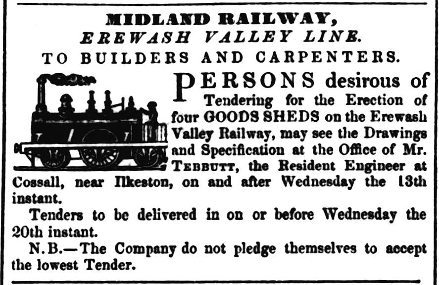 July 26th, 1845 …. “Great excitement prevailed in Ilkeston on Saturday (July 26th) in consequence of the passing through committee of the Erewash Valley Railway Bill“ (Nottingham Review, August 1st, 1845)