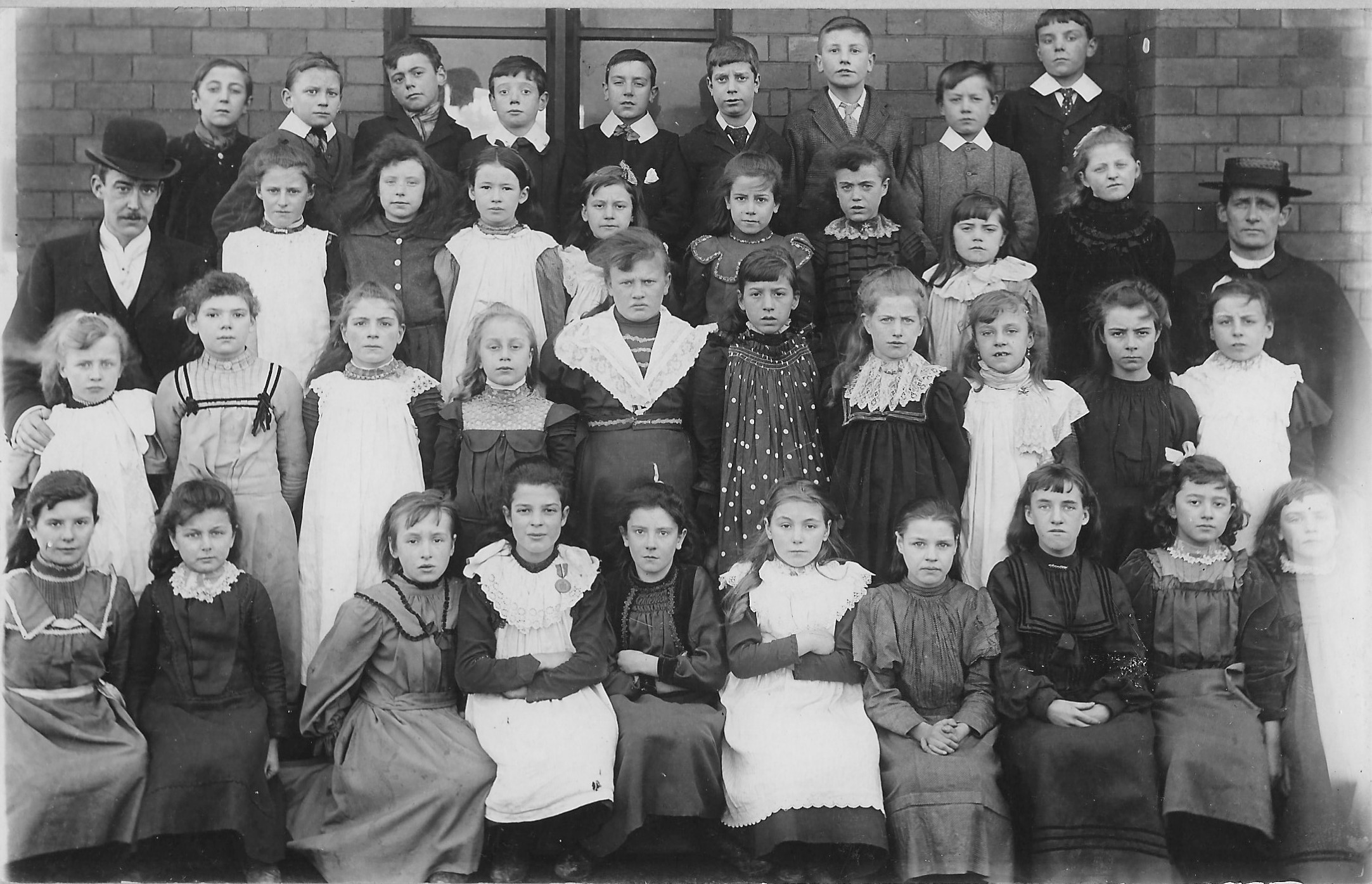 This second photograph appears to have been taken a year or so later. Pam believes that the girl in the centre, with the spreading white collar, is Mary Elizabeth Ebbern (1889-1961) … she also appears in several photos of the Ebbern Family. She looks about 11 years old here ?