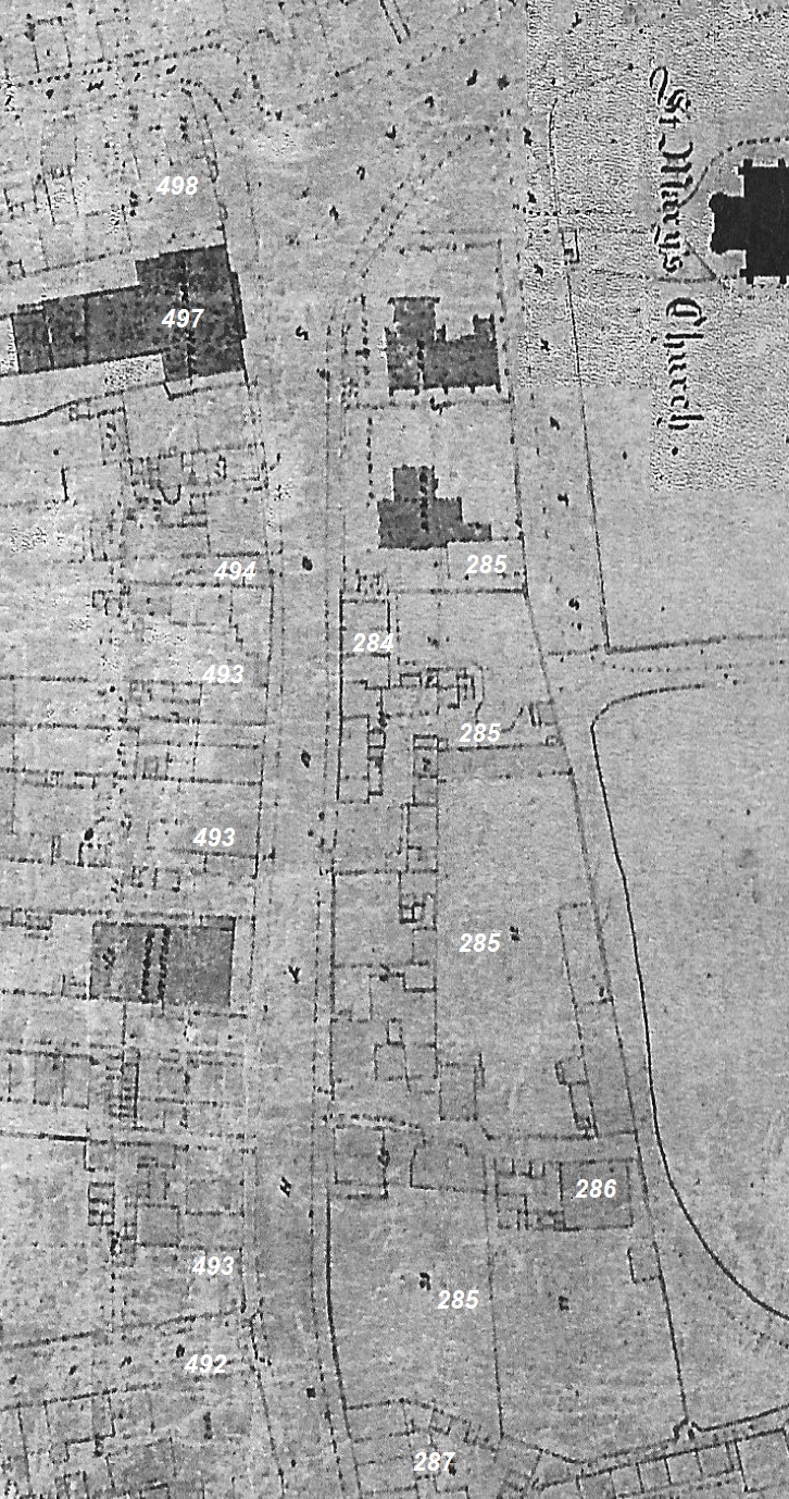 Plot 282, surrounding the parish church was owned by the Duke of Rutland.