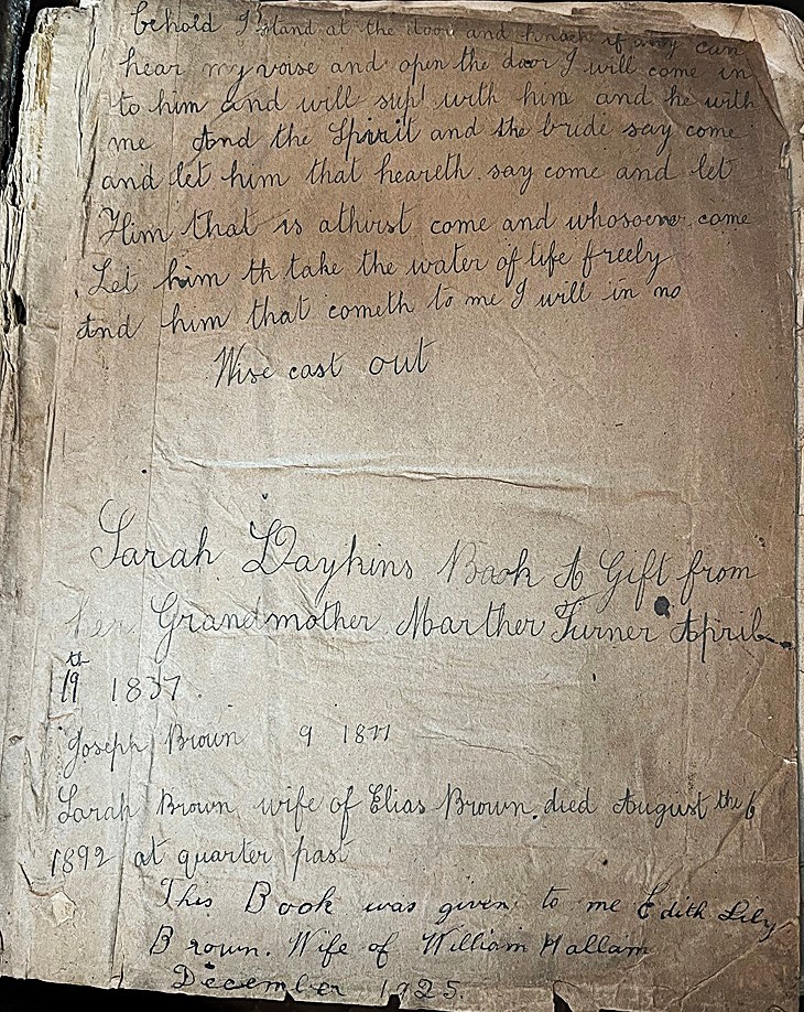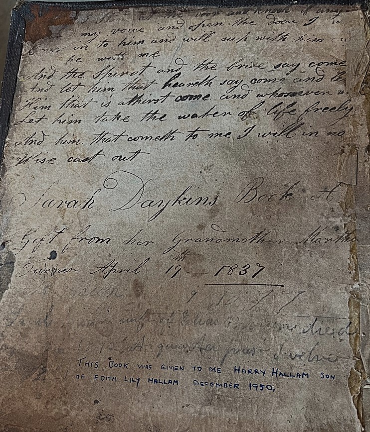 Sarah Daykins Book a gift from Grandmother Martha Turner April 19th 1837