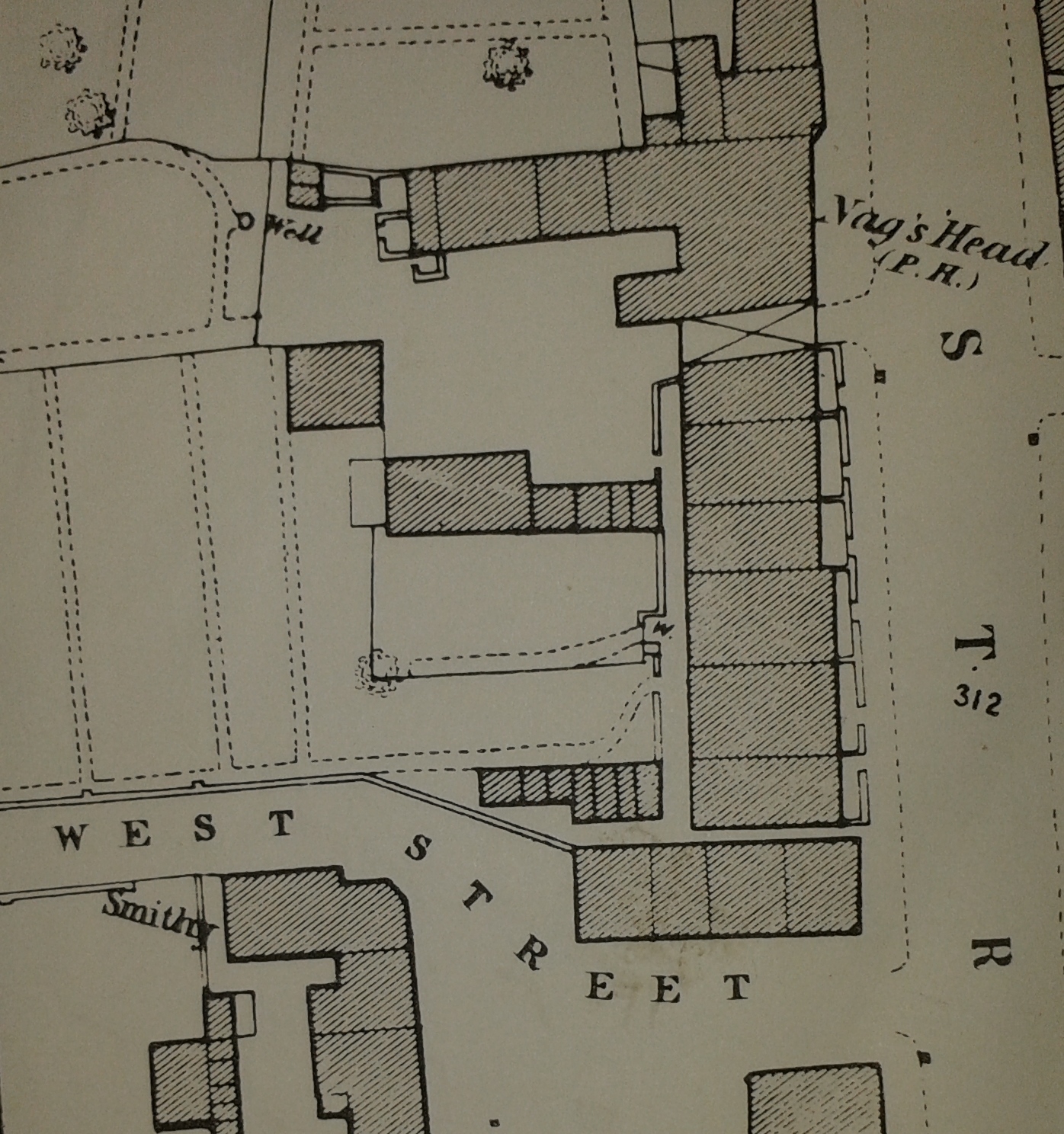 We are now walking southwards along the left-hand side of South Street (the west side), leaving behind the Nag’s Head, and on towards West Street, previously named Wide Yard.