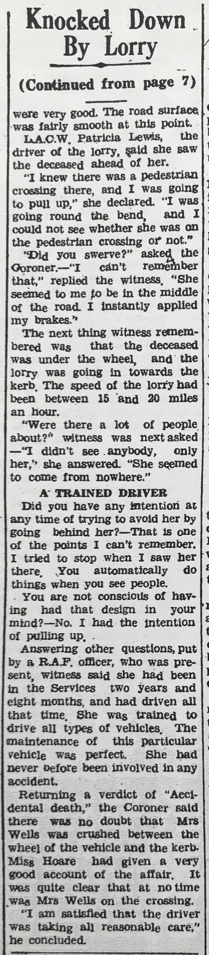 At the inquest on the following day it was reported that death ‘must have been instantaneous’, and a verdict of ‘Accidental death’ was recorded, no blame being attached to the driver of the vehicle.