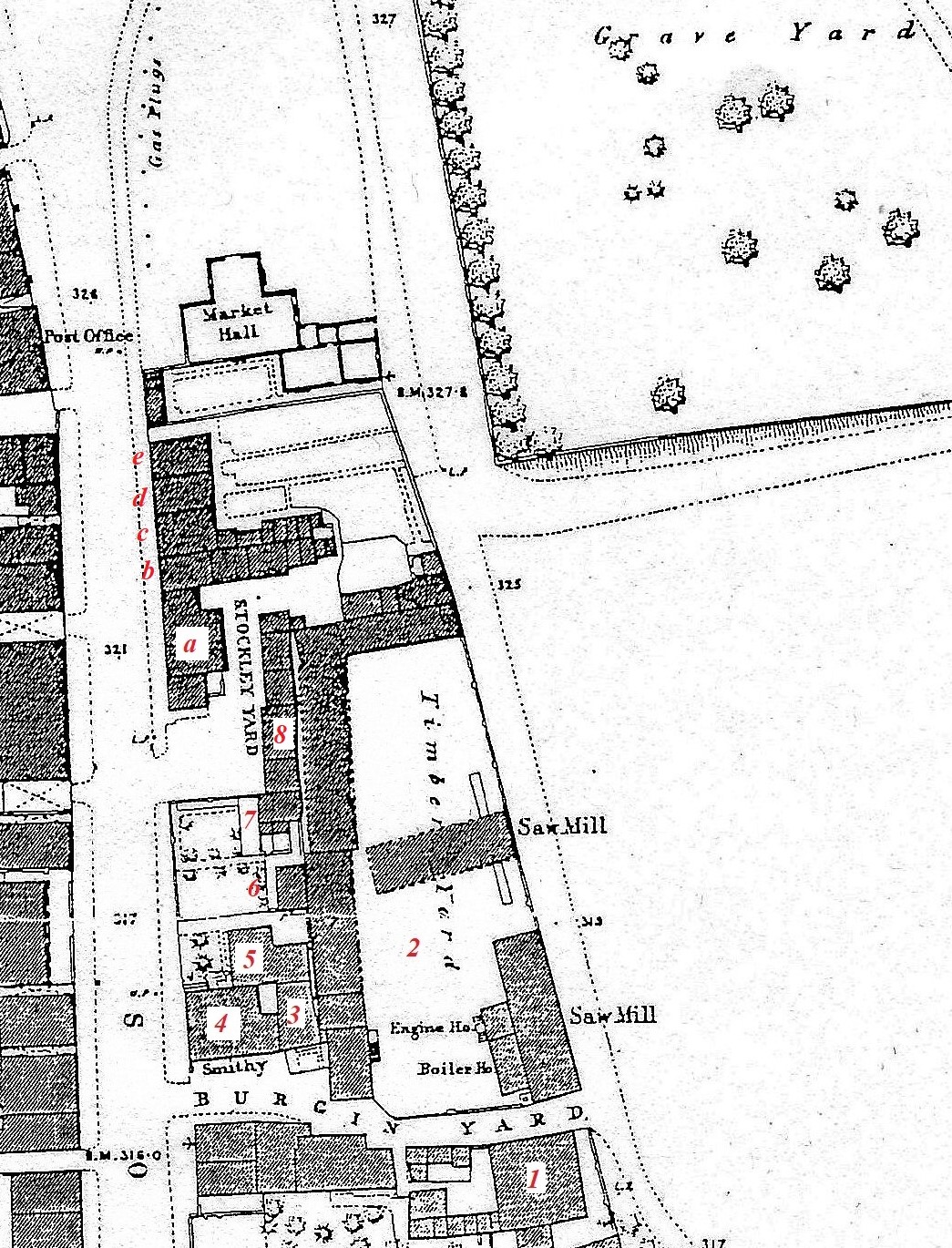 On the north side of Burgin Yard was Warner’s timber yard, and workshops. (2 on the map above)