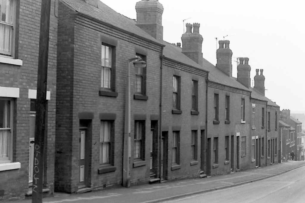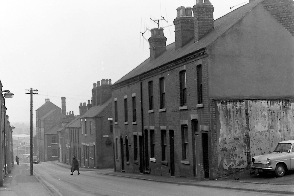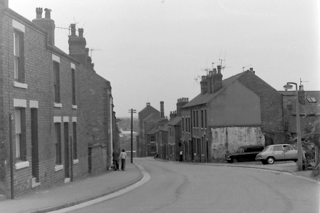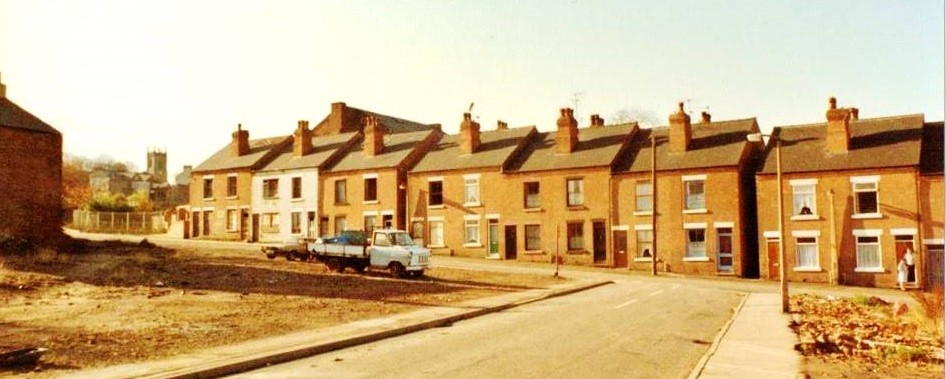 …. the houses on the eastern side have now been demolished to make way for Ilkeston’s relief road. Here we are standing in Byron Street, looking back at Burr Lane, (c1984) before the relief road was built.