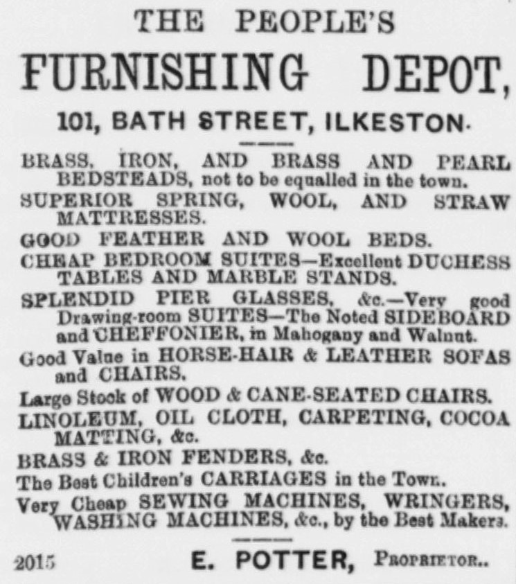 The 1861 census locates them in close proximity to the Adcock family (of Adcock’s Yard off Bath Street) and from their arrival in Ilkeston and then throughout the 1860’s they traded in Bath Street.