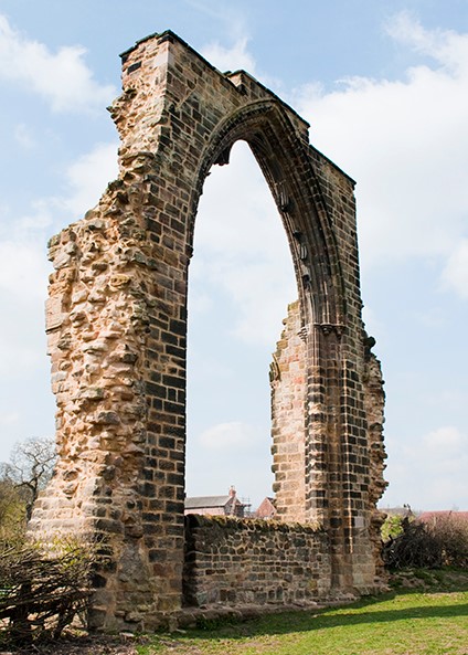 It did not however escape the blind indescriminate persecution of that King’s Minister, Thomas Cromwell, who razed the building to the ground, leaving only one stone arch, which marks the east end of that once splendid Dale Abbey.