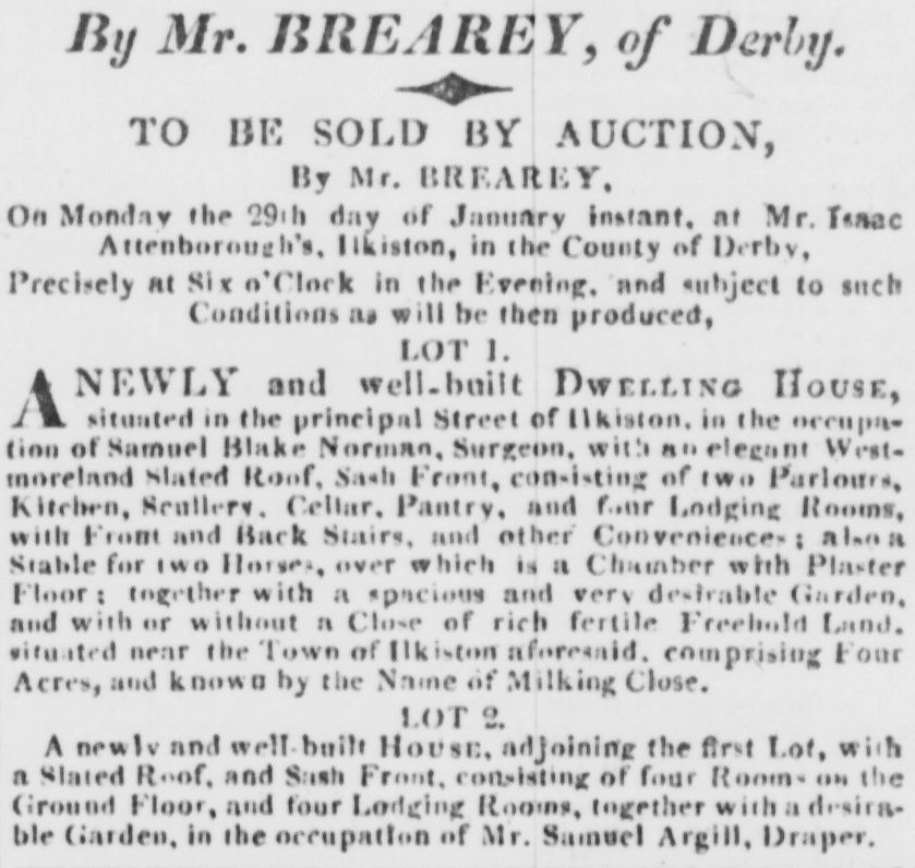 In May 1881 the Trustees under the will of George Blake Norman put up for sale his Ilkeston estate.