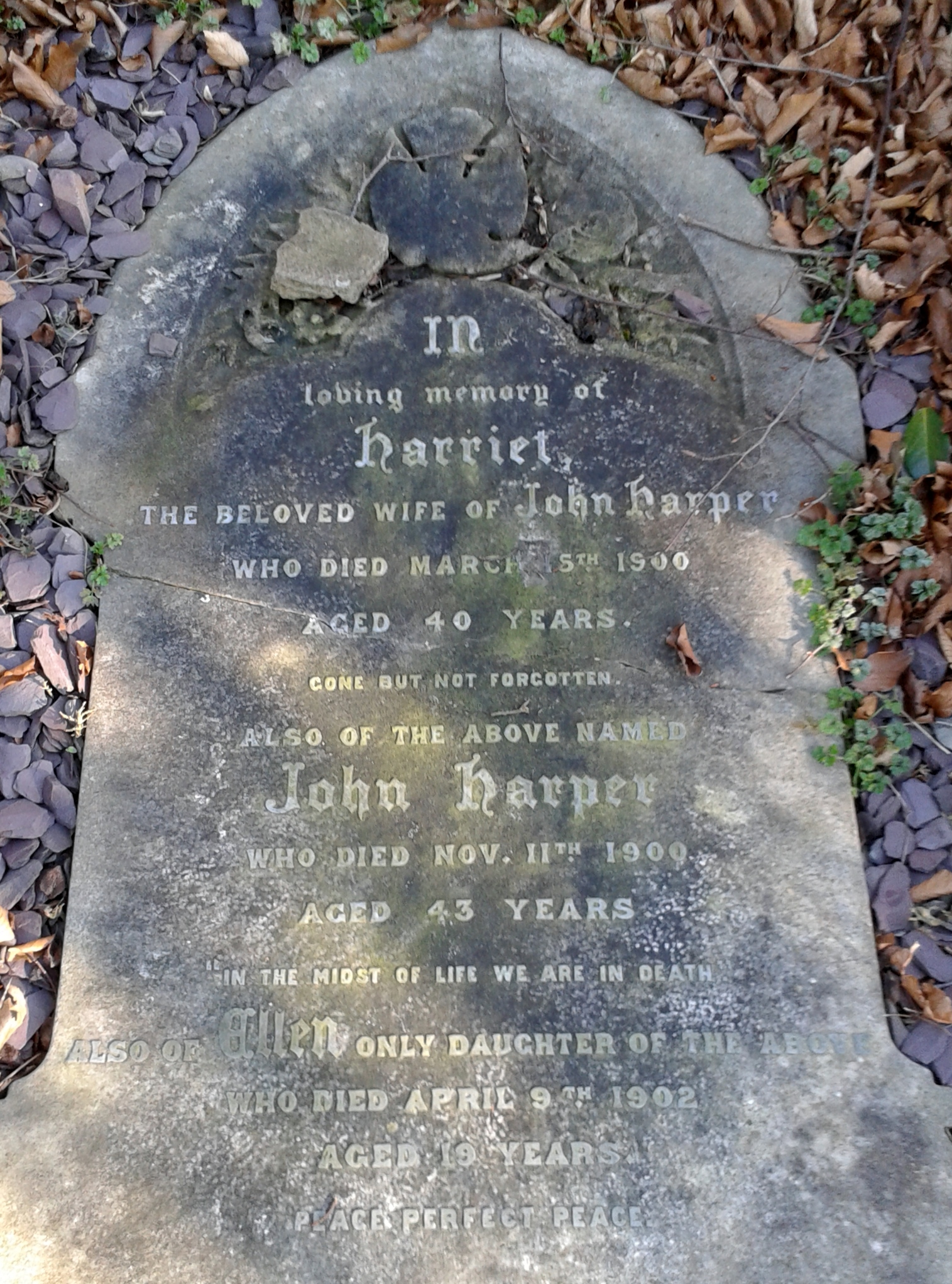 Quickly we arrive at the gravestone of members of the Harper family ….