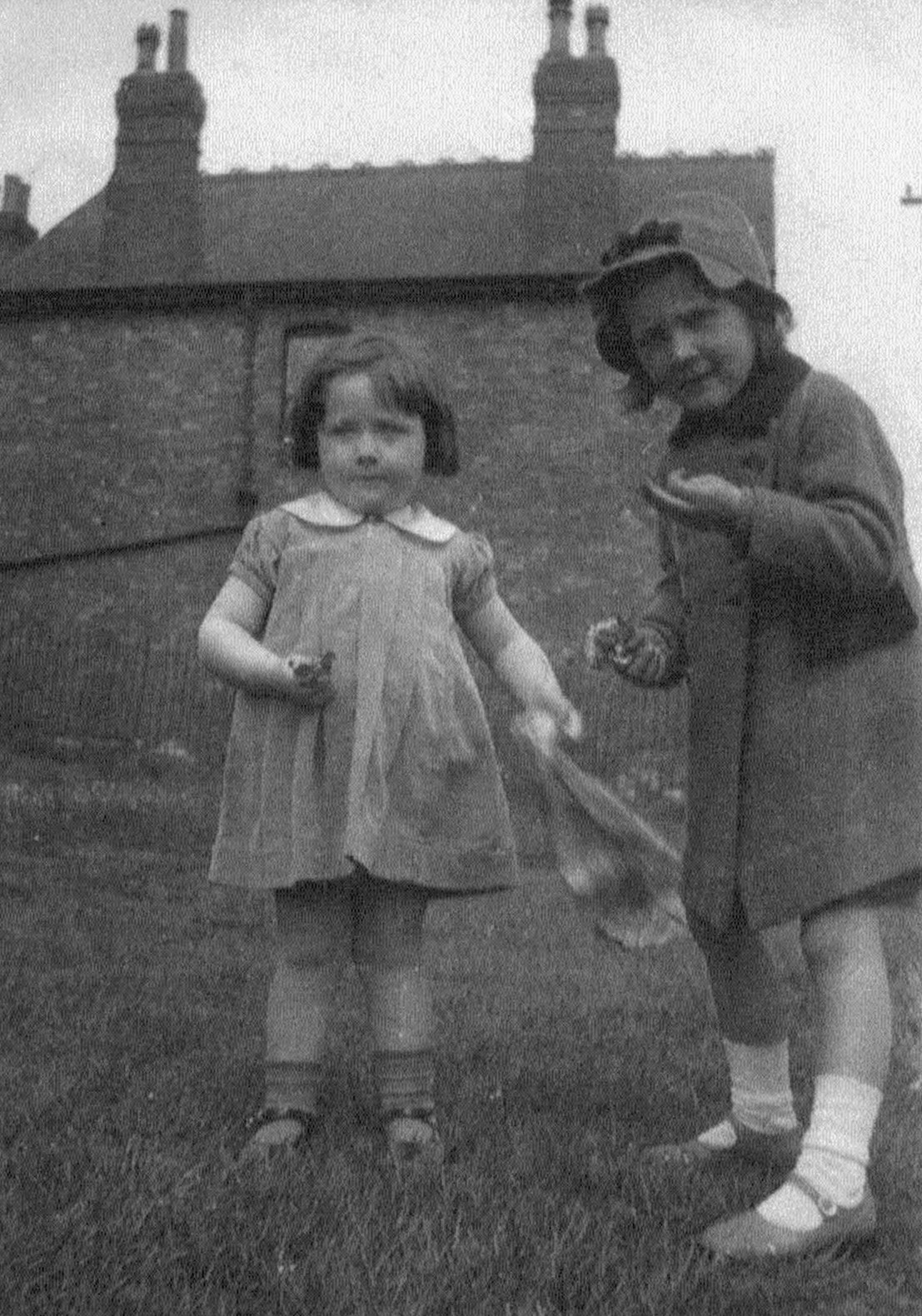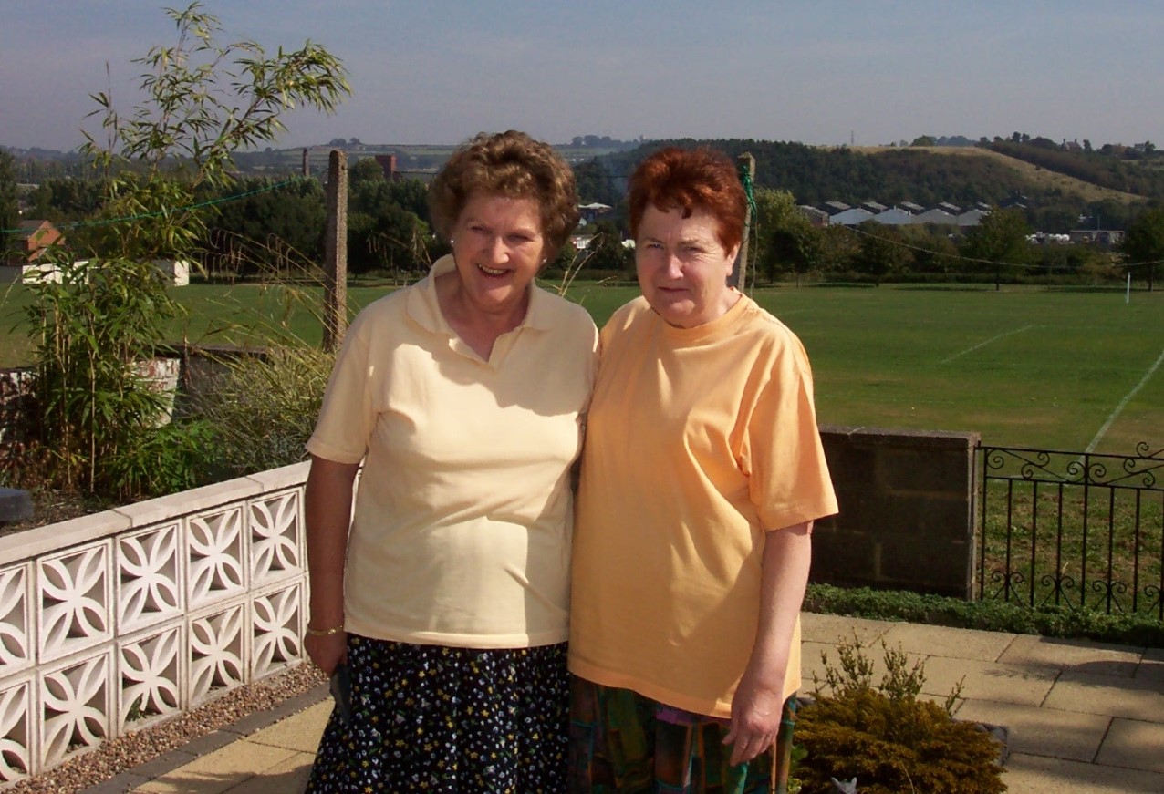 Dorothy with cousin Marie Elizabeth, daughter of John Richards and Ethel (nee Figg), at 22 Flamstead Rd, Ilkeston, with the “Ashes” behind them (September 2003)