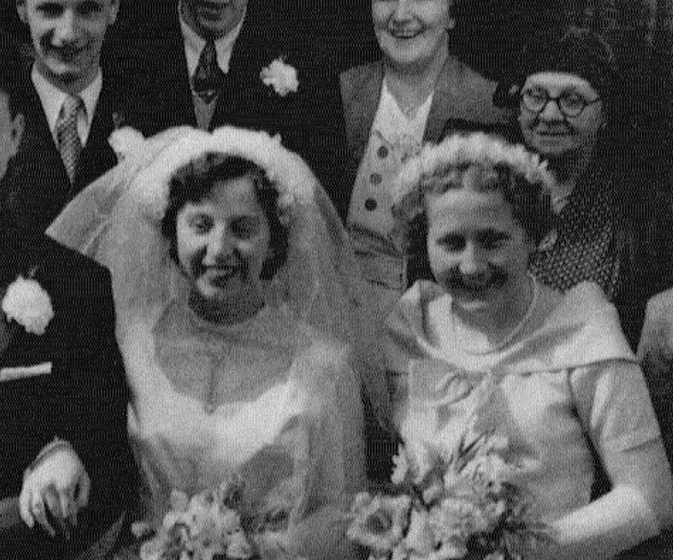 The bride was Audrey Jolly who was a second cousin to Dorothy. Behind Audrey is her brother David