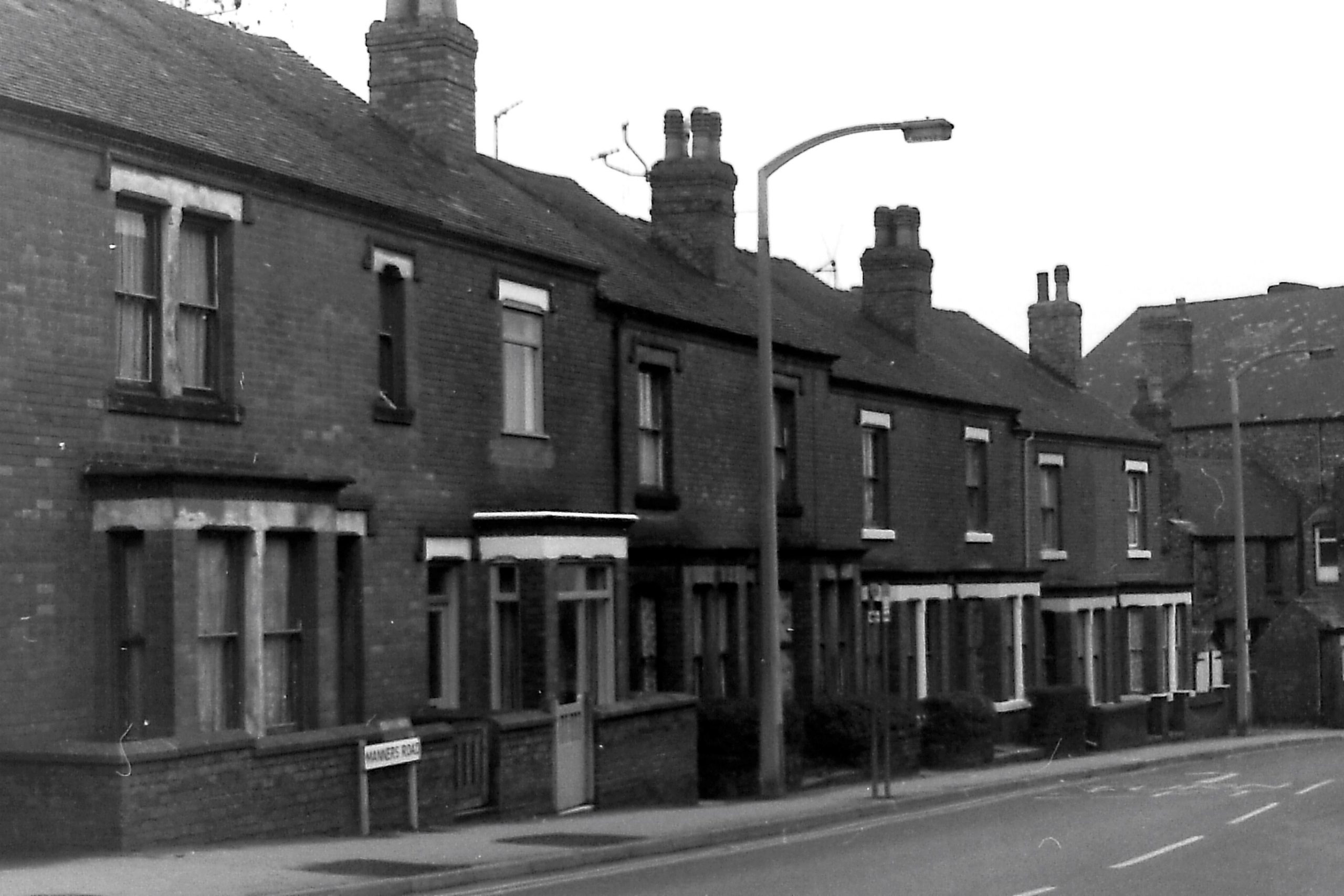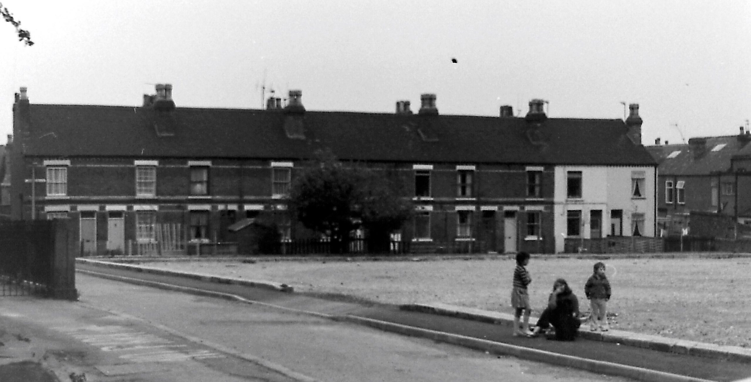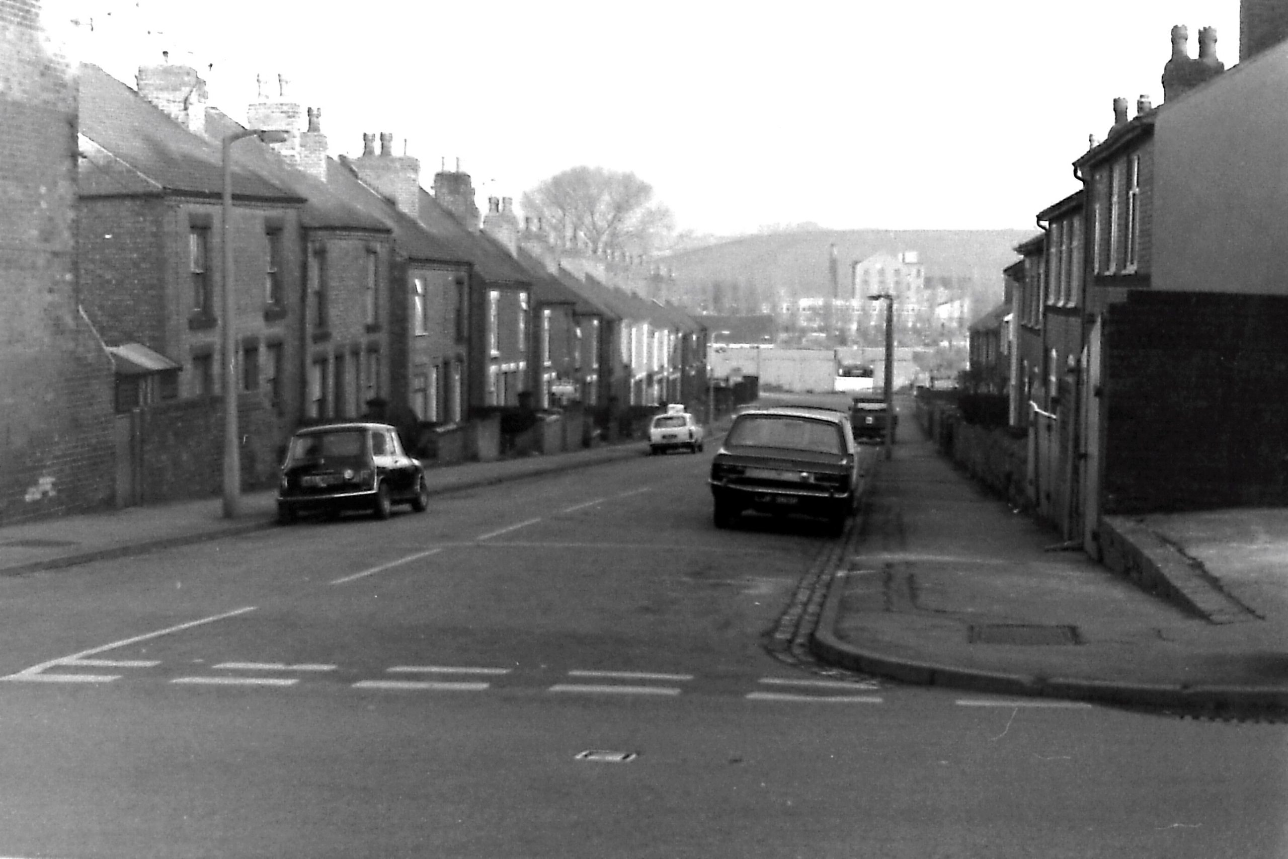 In the photo we are looking down Eyres Gardens, south-west to north-east, from Awsworth Road. The houses were developed in the late 1870s and 1880s.