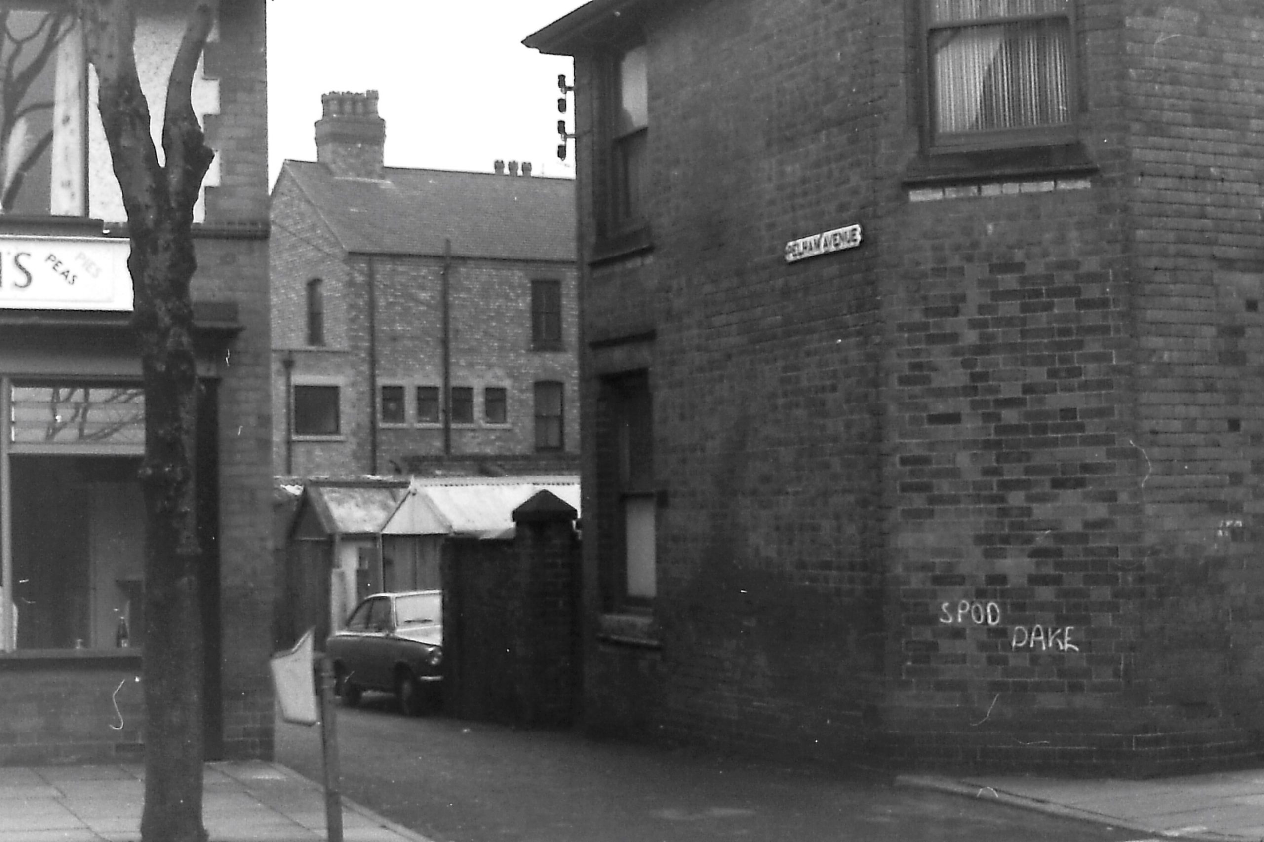 The photo shows Fullwood Street joining on the right foreground and Nesfield Road on the left (west). Also on the left you can just glimpse the white, imposing structure of the ‘New Theatre‘.