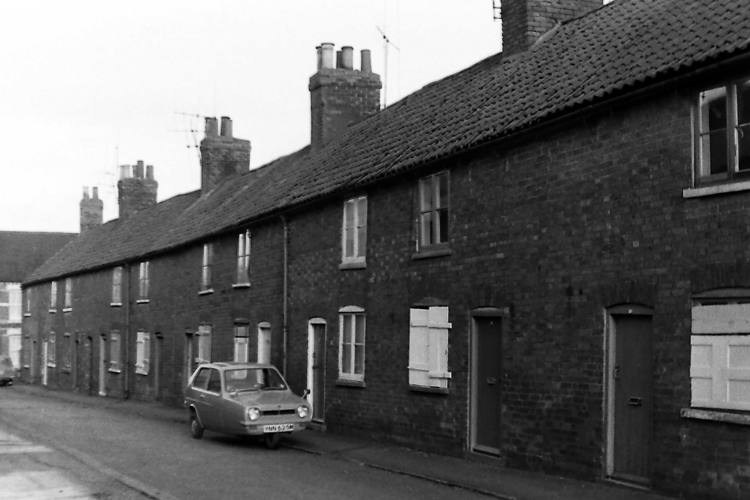 This photo shows the houses on the east side with the Inn at the far end. The car is parked in Northgate Street.