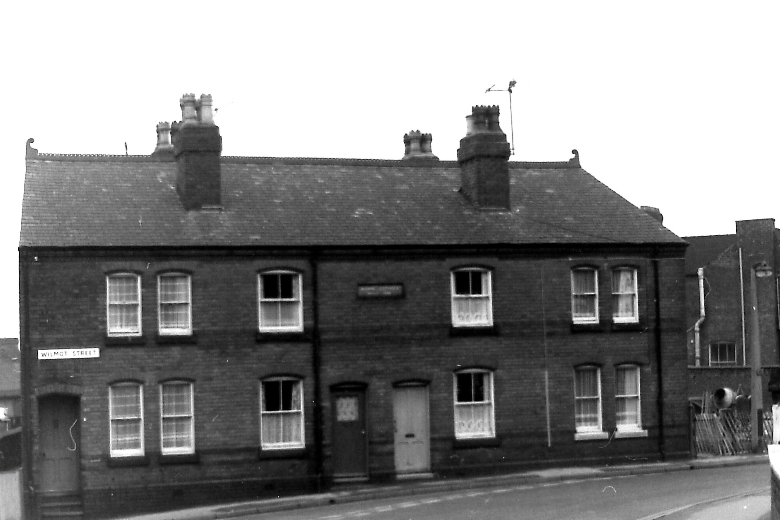 This part of Wilmot Street was previously known as Spring Lane, which also included part of what was later Fullwood Street. These houses (known as Bourne Cottages) stand between the Spring Cottage Inn (on the right, west) and the premises of St. Andrews Methodist Church.