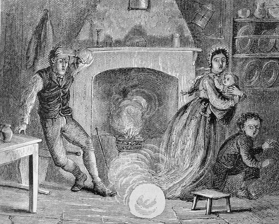 Torrents of rain, detonations of thunder, and a great ball of fire, the latter falling directly on the Vicarage, smashing a chimney pot and tumbling down the chimney, into the dining room. Just as the Vicar and his family were sitting down to enjoy dinner. As the electric current passed through the house, Edward’s wife, Sarah Louisa, sitting by the fire, received a violent shock, and then the bathroom was set on fire. The emergency services — in the form of a police constable, an Inspector, and the Fire Brigade — were quickly on the scene. So quickly in fact that there was no need for the water hose to be deployed ‘in anger‘. Burning woodwork was torn out and thrown onto the lawn.