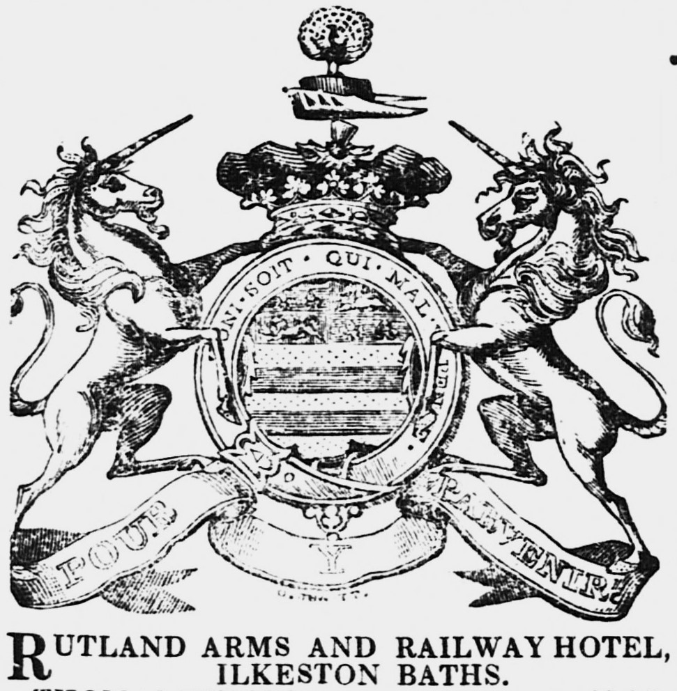 By 1848 the condition of the Baths had been allowed to deteriorate, the premises becoming ‘delapidated’. At this point their management was taken over by Thomas Hives and quickly restored “to a comfortable state of repair” for both rich and poor. A new splendid wing was added to Hives’ Hotel, fit to receive any member of the nobility who wished to wished to stay there. It seems that at this time the name of “Rutland Arms Inn and Railway Hotel” was adopted by Thomas, as was the crest of the Duke of Rutland.