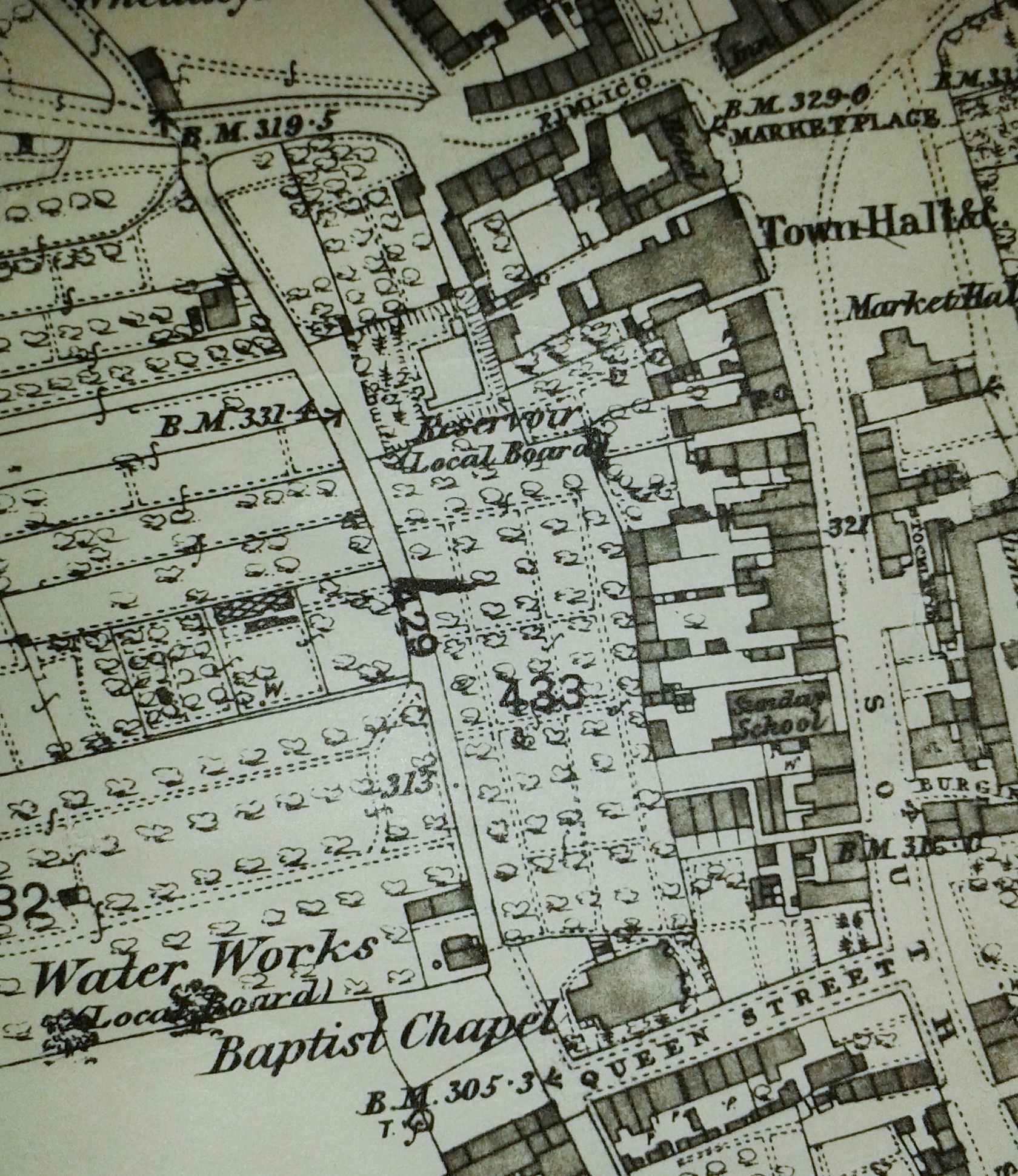 White’s Directory of 1857 sites the Water Works in the centre of town, with a steam engine and two filter beds.