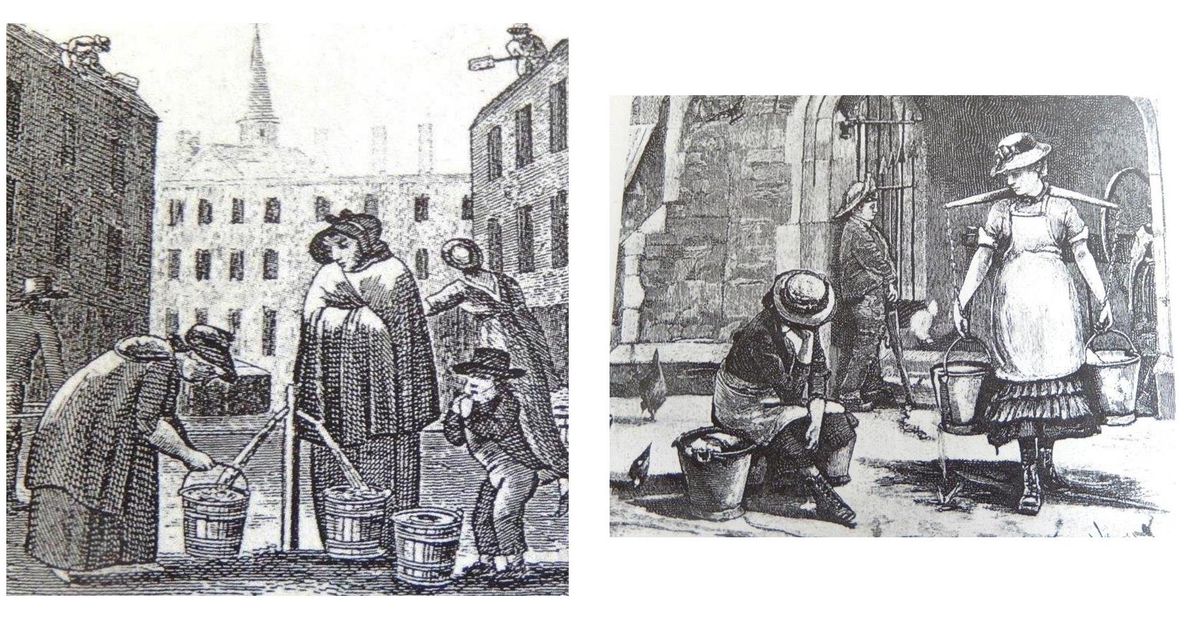 Some of the people would collect the rain water in butts, standing against their cottage doors. This was very well in a wet season, but when a dry time came their stocks were soon exhausted, and if they had no access to the wells, which was mostly on private property, they had to patronise the parish pump that stood in a recess behind Weaver Row.