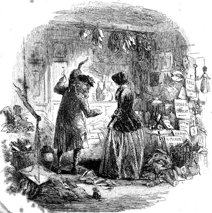 Perhaps as a “Dolly Shop” ? …. The shop window was “piled high with miscellaneous items. Parts of things rather than things in themselves. Pipes and screws and planks. A small mountain of chair legs. Shoes without soles, bustles without fabric, the heads of hammers. Torn handkerchiefs. Lamps without wicks. The backs of mirrors, backs gone. Nothing whole. Nothing clean. You go to the likes of a pawnbroker to pawn your emerald ring or your solid gold watch. Knowing you can get it back when your ship comes in. Your marine stones are something else again – they’re a step below. In a marine store you pawn a chair, a nice suit, your bed, and you aren’t expecting to see none of that again. Now your dolly shop is a whole other kettle of fish. Dollys are for them who have got half of nothing and are fucked to boot. If you ever find yourself in a dolly, you know you’ve reached the very bottom of the bucket. That’s who you are and where you live. At the bottom”.