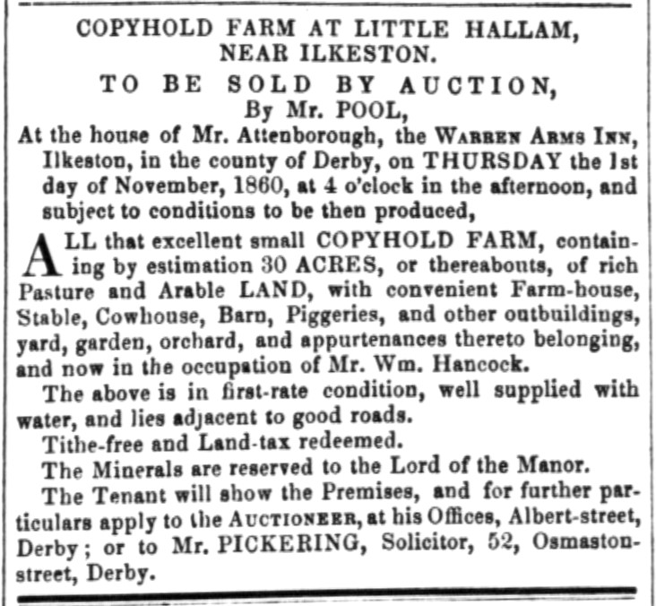 William Hancock and his family moved out of Bridge House in 1860 when the farm was put up for auction.
