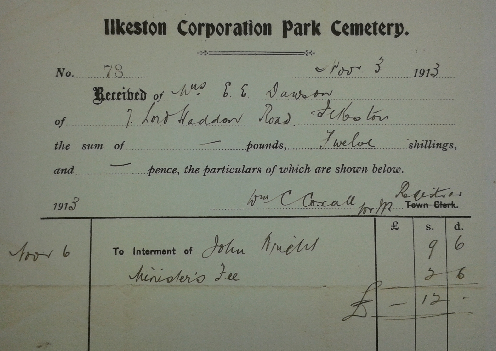 Interred in Park Cemetery, Ilkeston, Nov.6