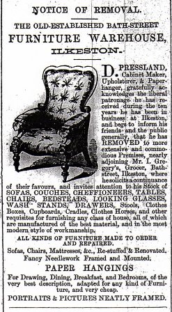 The 1861 census finds his family in Granby Street but he soon moved into Bath Street where he traded for the most of the rest of his life — although the 1891 census shows him at Jessop Street in Codnor, though still trading at Bath Street.