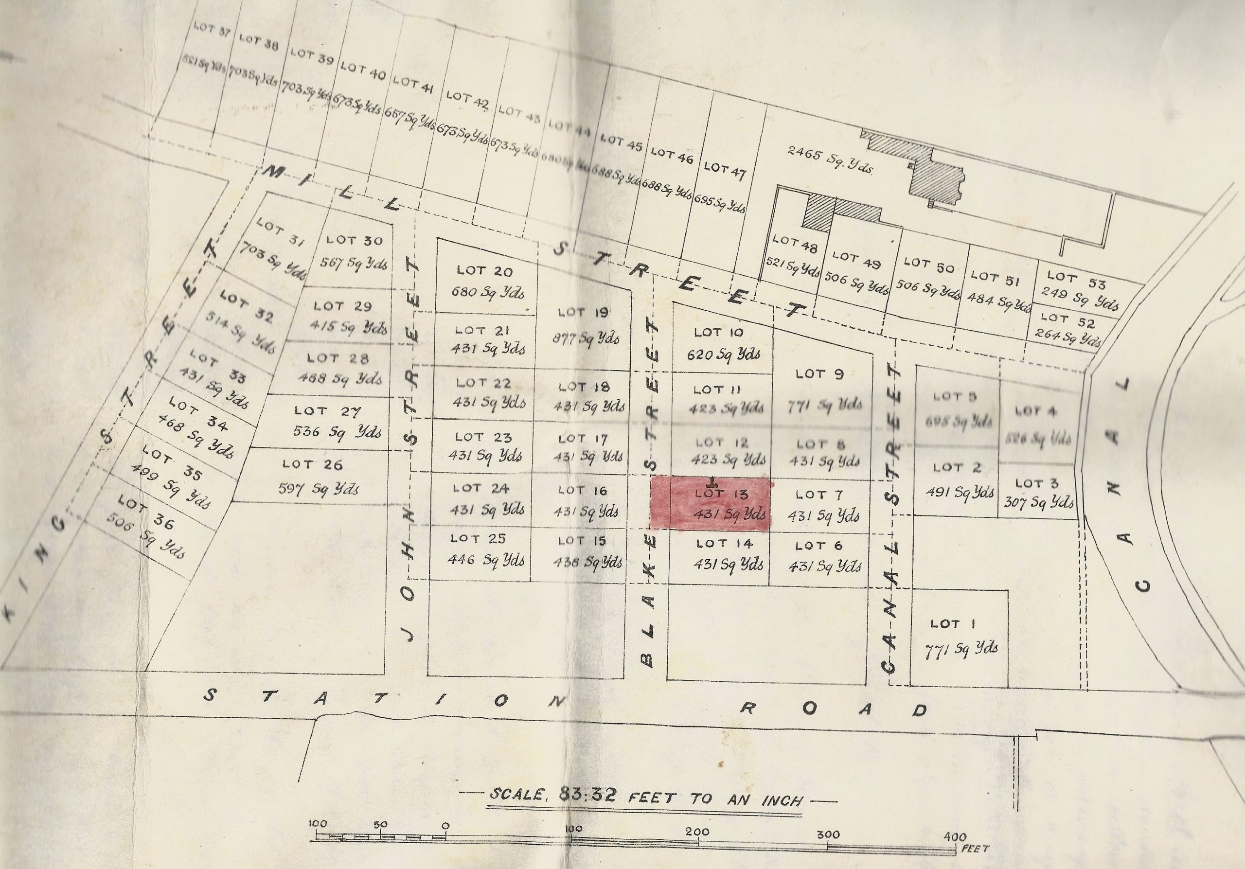 Plan of the Blake Street area from a conveyance document, dated April 24th, 1895, between Henry Knighton, George Wright and Moses Fulwood