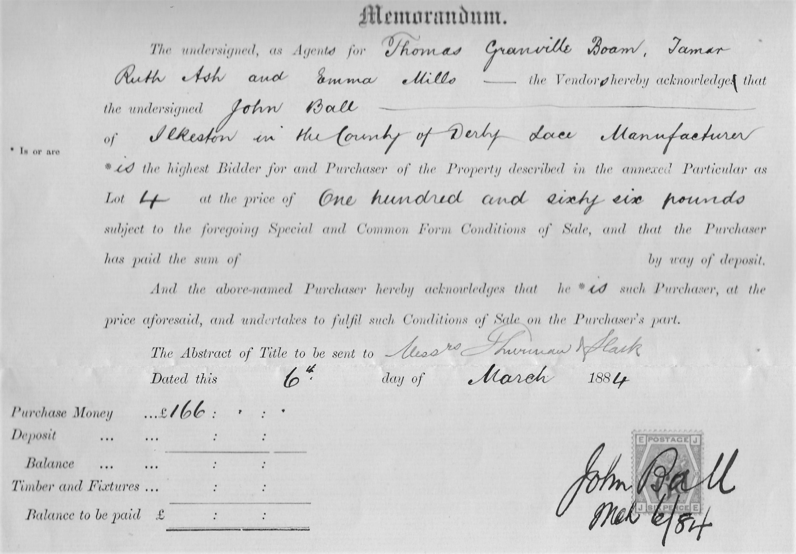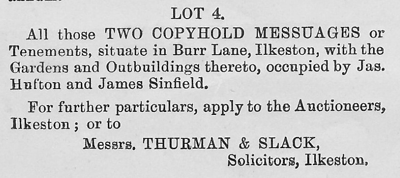 At a public  auction held at the Old Wine Vaults on March 6th, 1884, John Ball, a lace manufacturer of Dodson House in Burr Lane bought a couple of properties (Lot 4) in his own back yard.