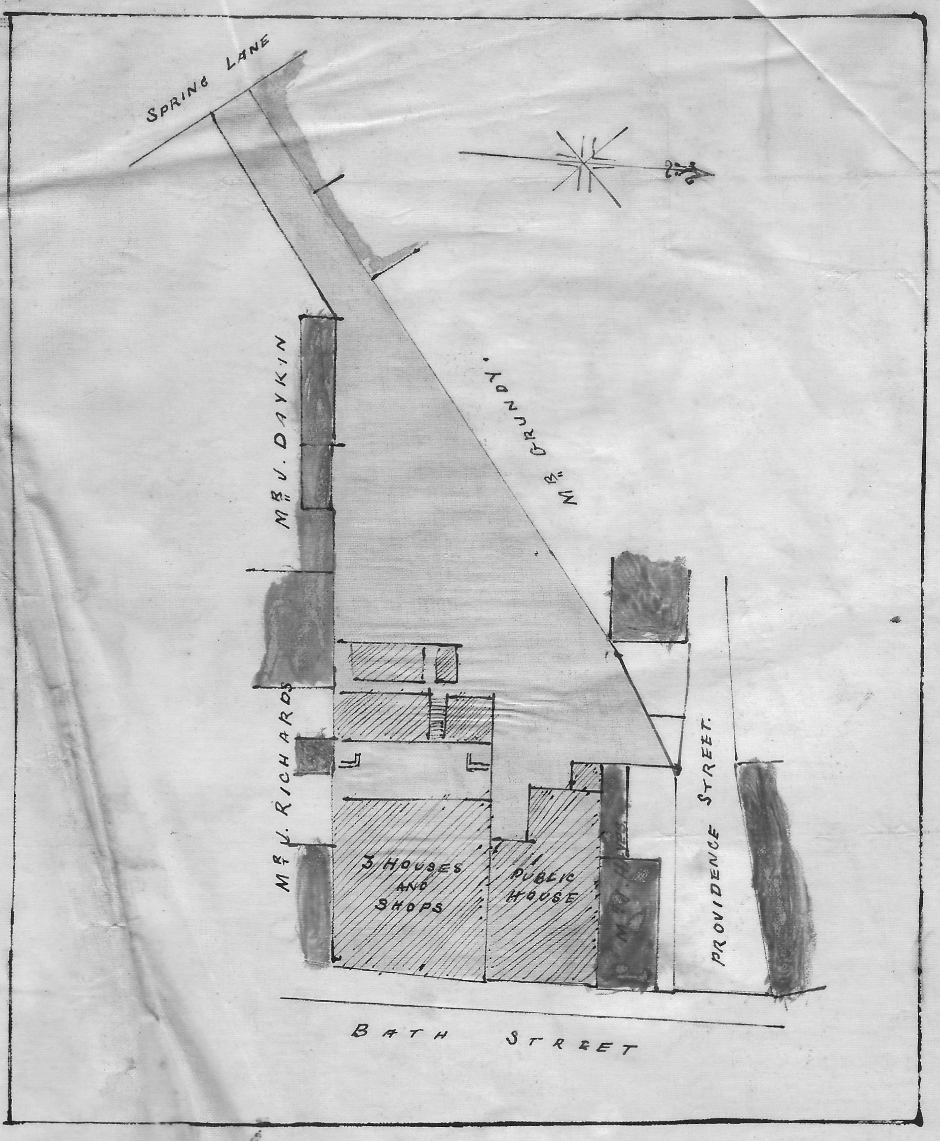 On February 4th, 1899 Walter Bonsall sold off the cottage at the rear of the New Inn (with its frontage to Wilmot Street) to Robert Widdowson. By that time William Carrier was no longer living there; it had subsequently been occupied by William Thorpe. At that time a sketch plan was produced to show the holders of property in this area, and therefore the neighbours of the New Inn.
