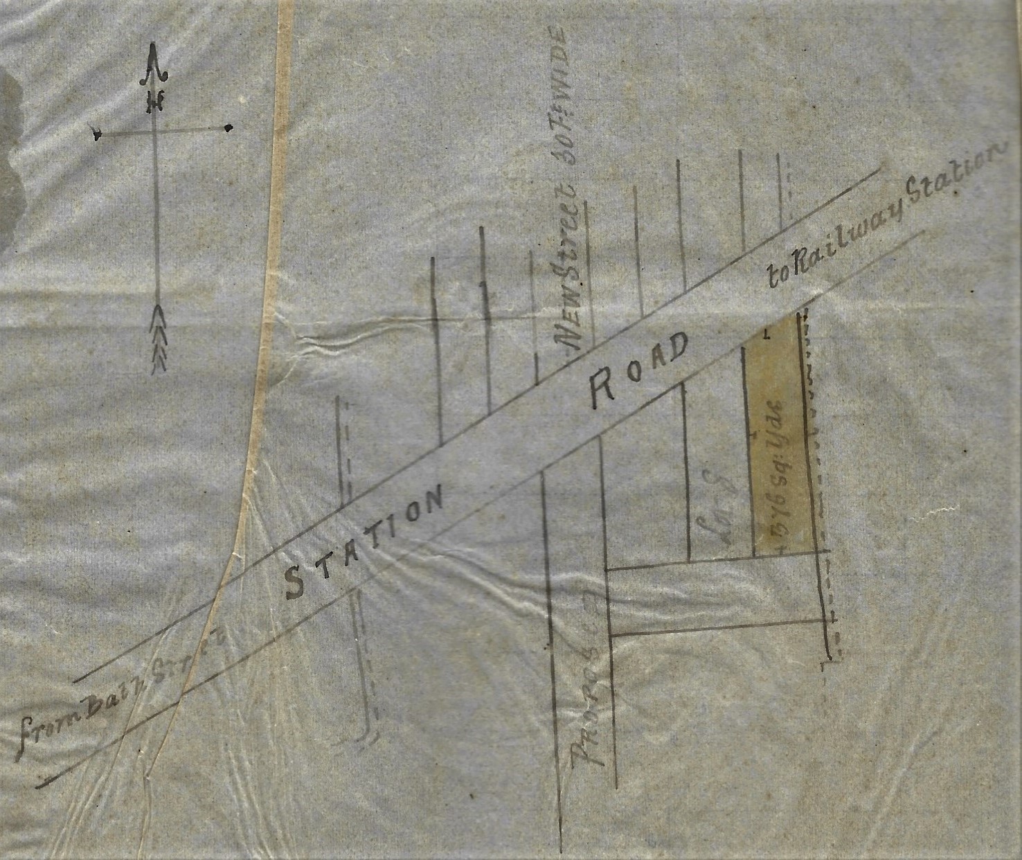 Because of financial difficulties he was forced into bankruptcy and obliged by his creditors to sell this land in 1881, and in this way some of his property was bought by Charles Hiram Gregory, landlord of the Wine Vaults in East Street. It was described as being of 376 square  yards, “on the south side and abutting upon Station Road” and “on the east side of a plot of land marked Lot 8” and helpfully within the documents there was a sketch plan to show this (below)
