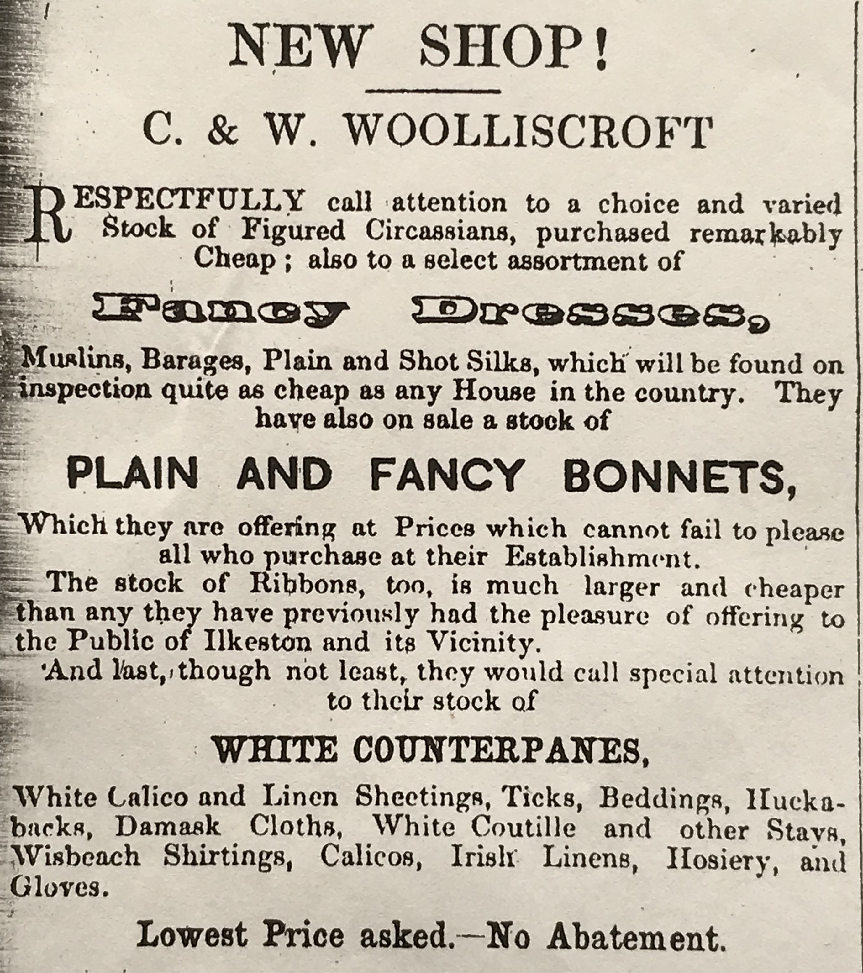 As you will be aware, the Woolliscroft family have their ‘new shop’ (opened last year I believe) on the east side of Bath Street, just north of New Street.