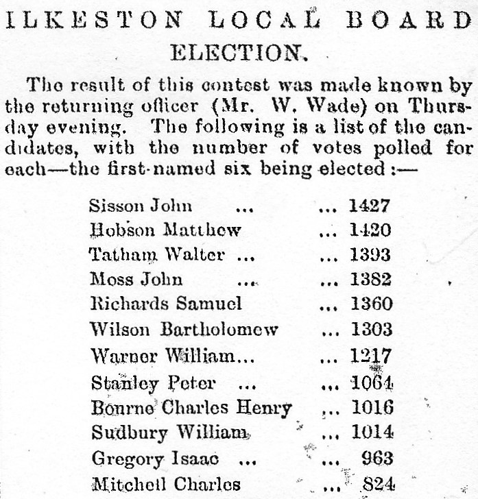 John Sisson was the candidate who headed the poll, securing the largest number of votes that had been given to any candidate since the formation of the Local Board.