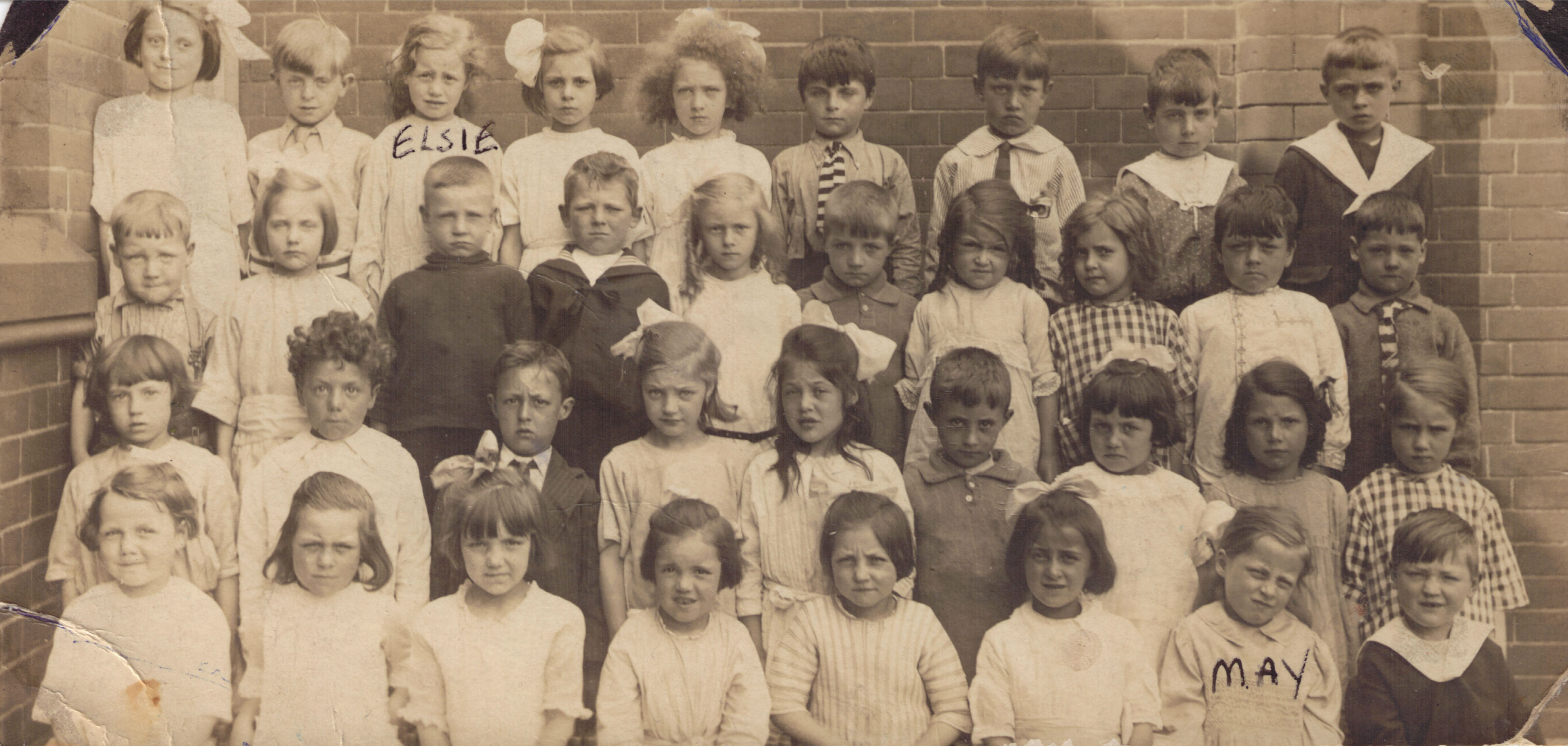 Elsie is top left, second one in. May is top right, second one in. The girls seem to be about 12/13 ? … dating the photo to about 1929.