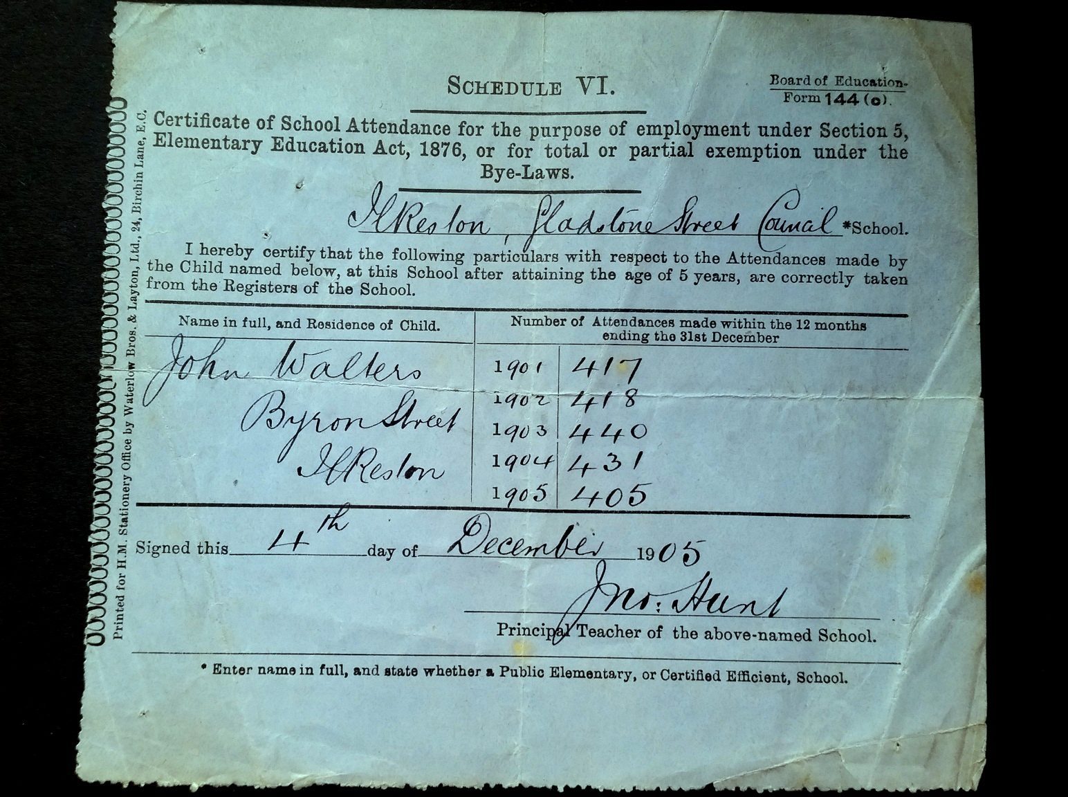And, for a change, this from Andrew ….. an attendance record for a distant relative of mine when he was at Gladstone Infants School just after 1900