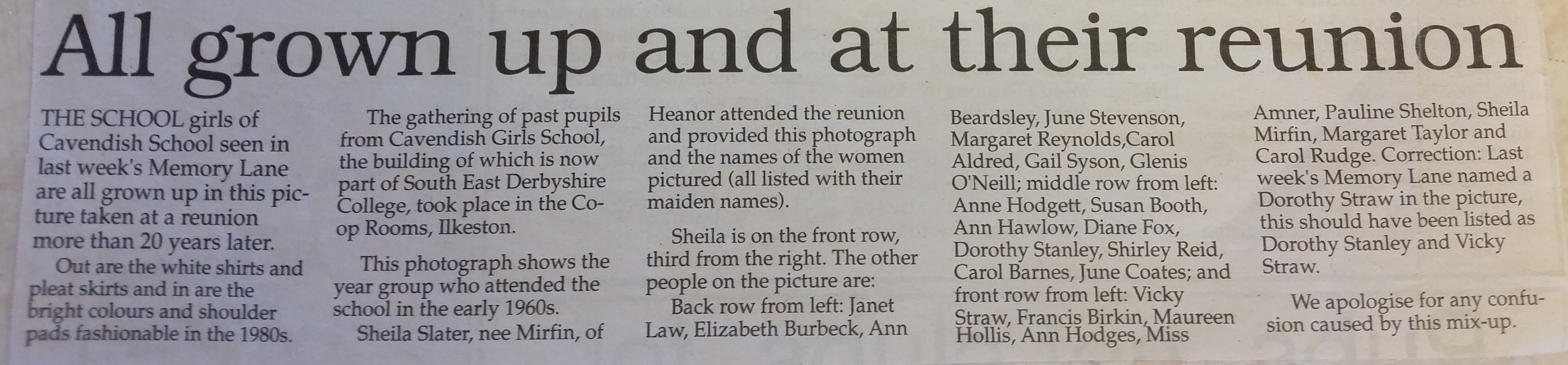 And on the back row (l to r), Margaret Henshaw, Pat Grainger, Christine Grainger, Maureen Meakin, Joyce Brooks, Pat Gle??, Christine Grace, Carol Siddons, Janet Slack, Teresa Shore.