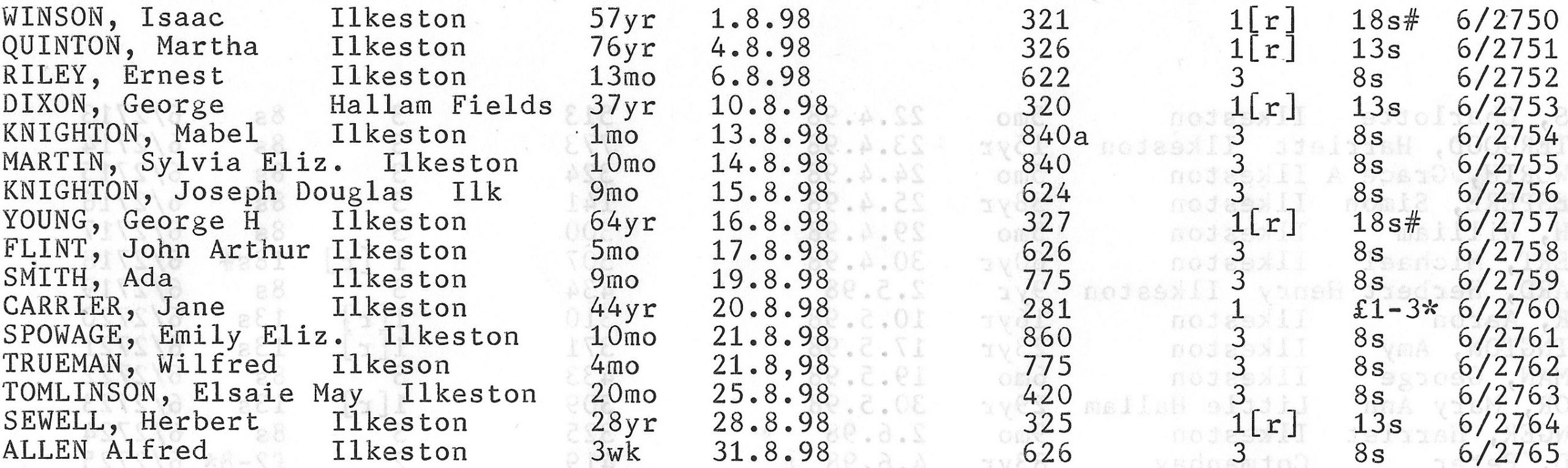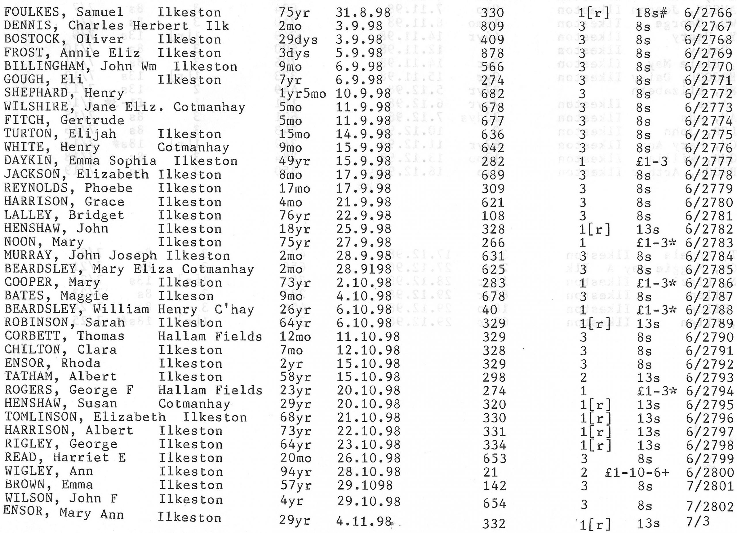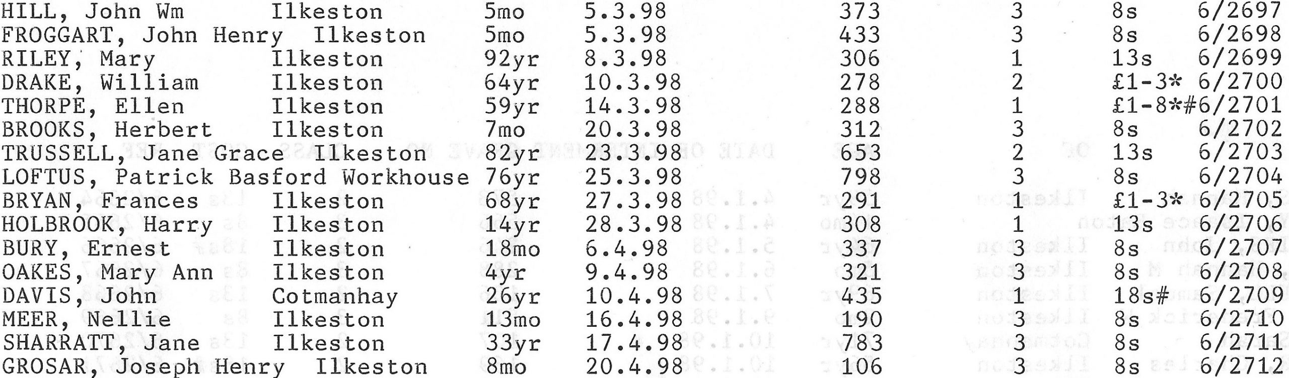 Stanton Road Cemetery burials 1898