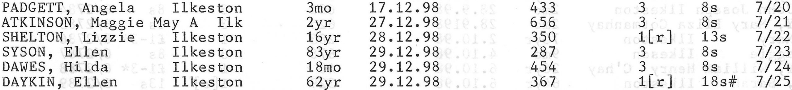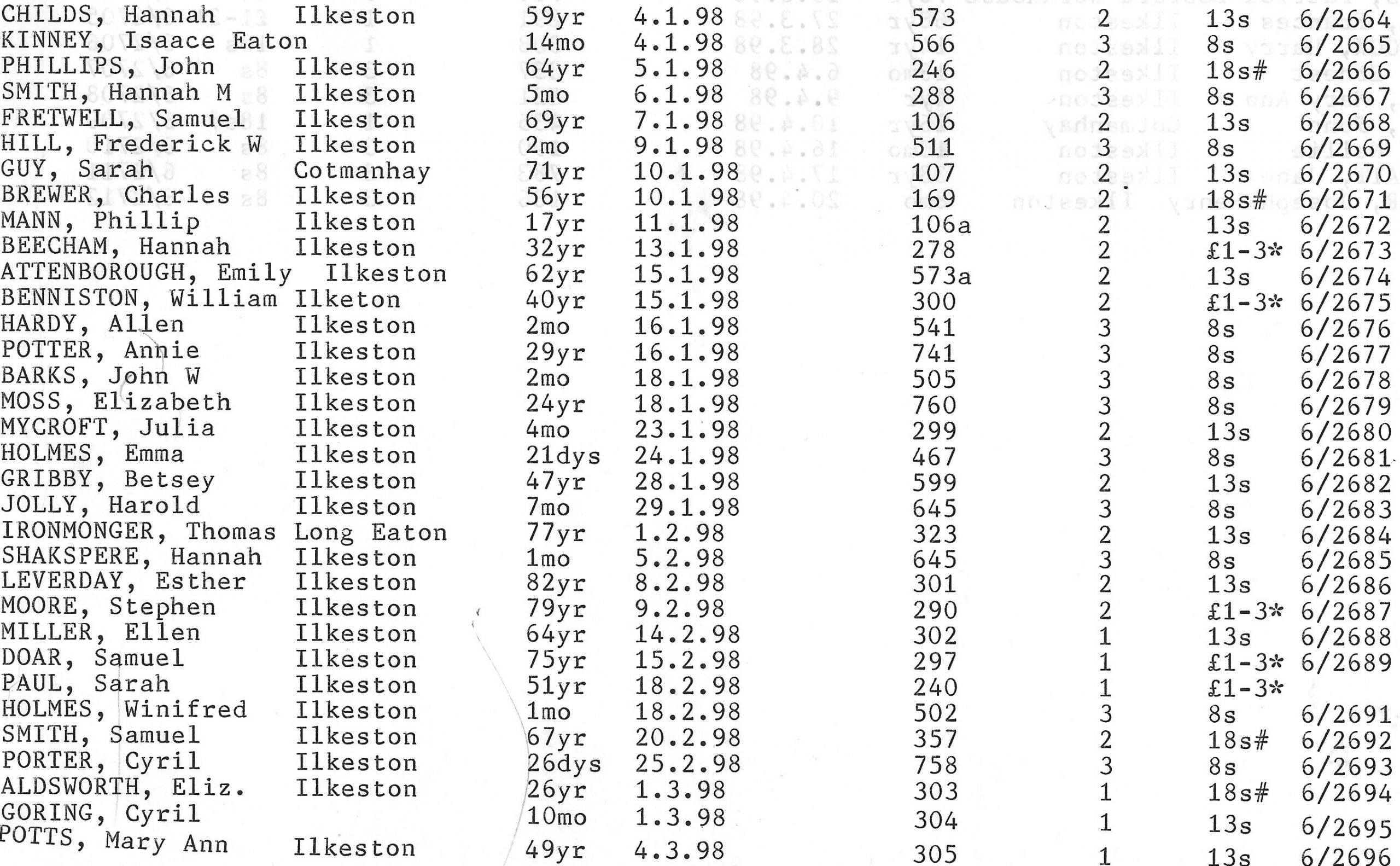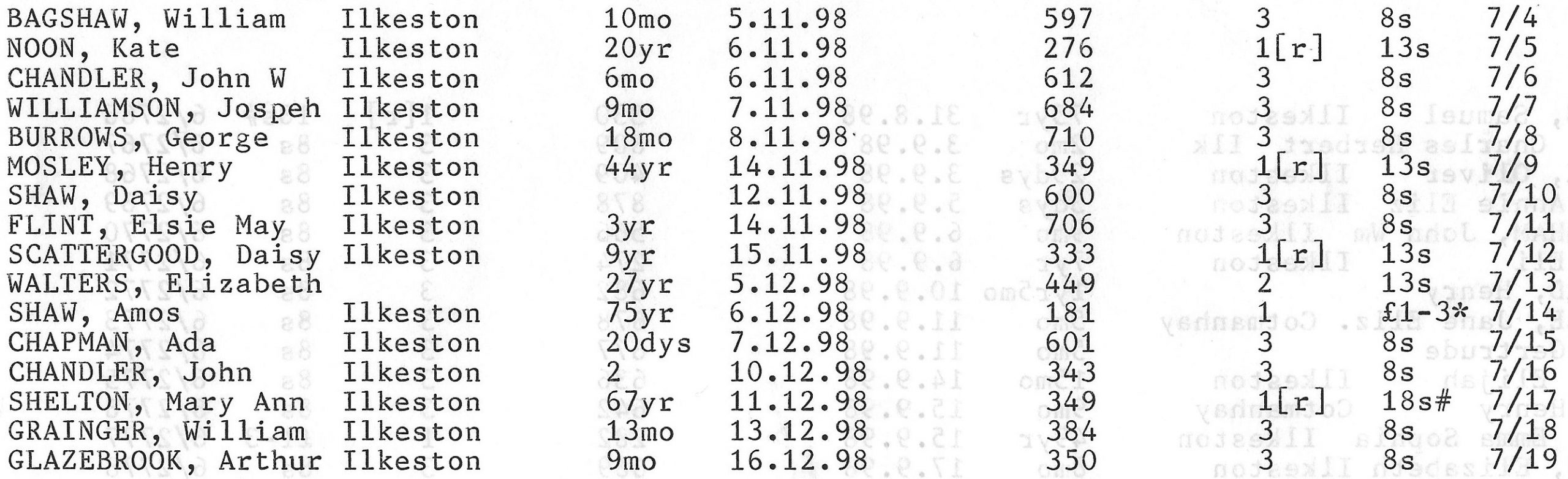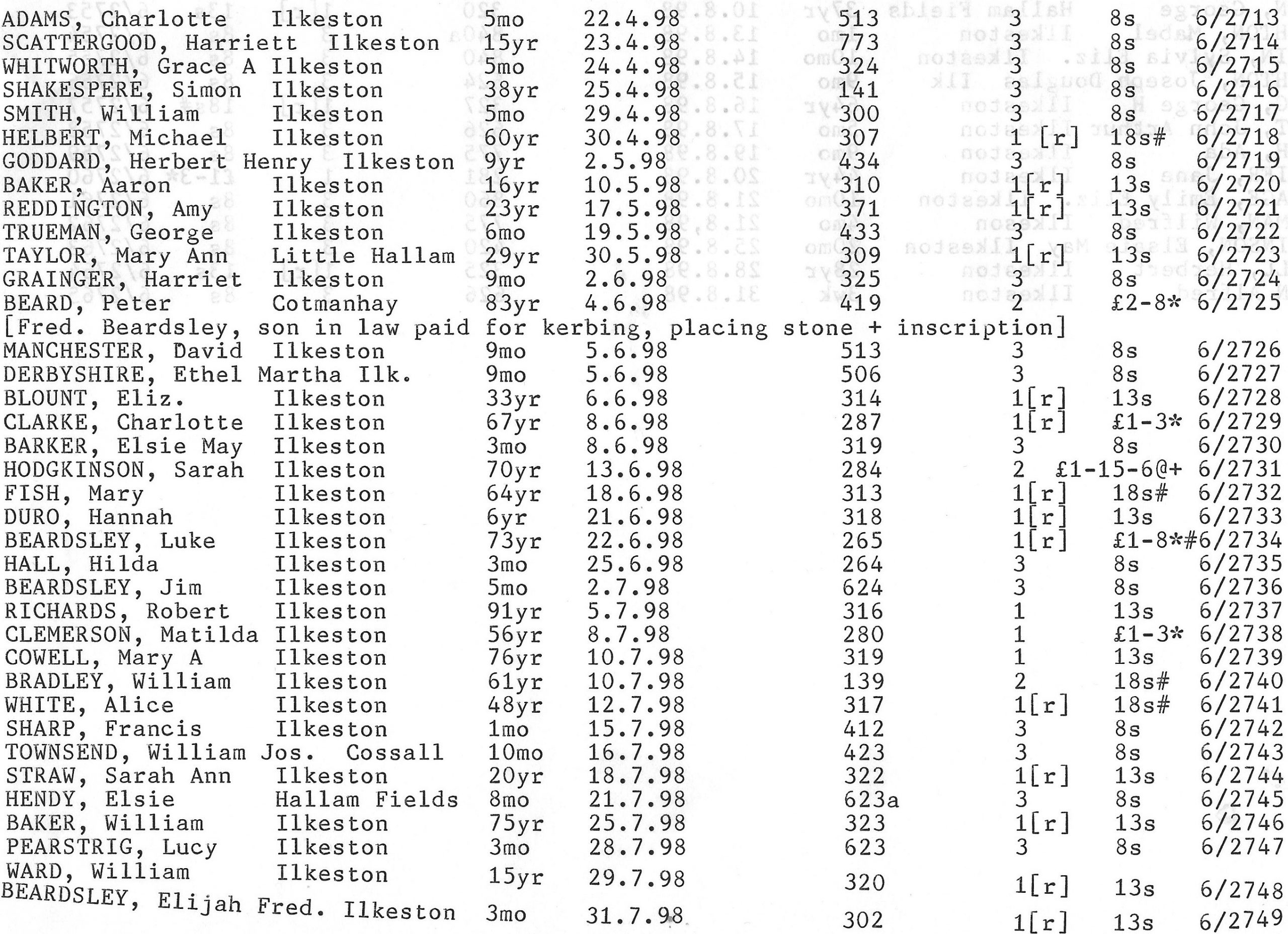 Stanton Road Cemetery burials 1898