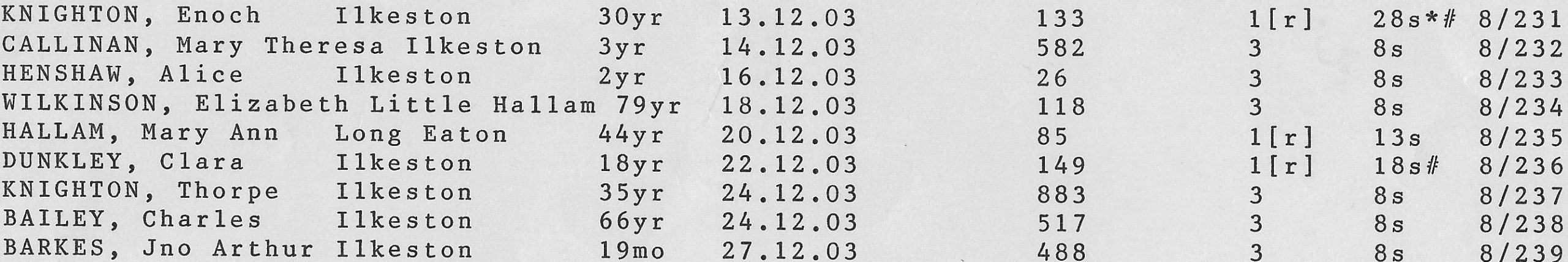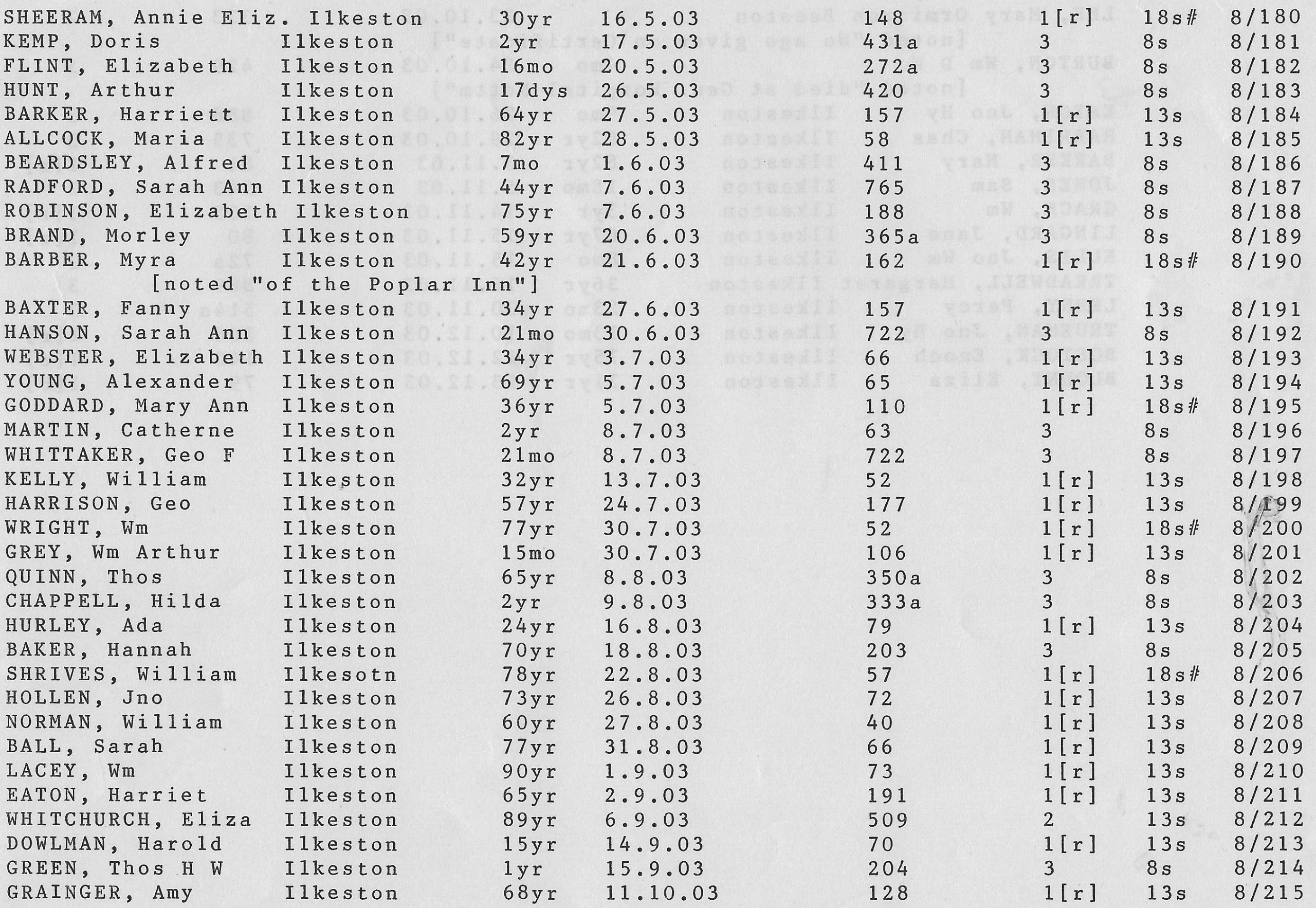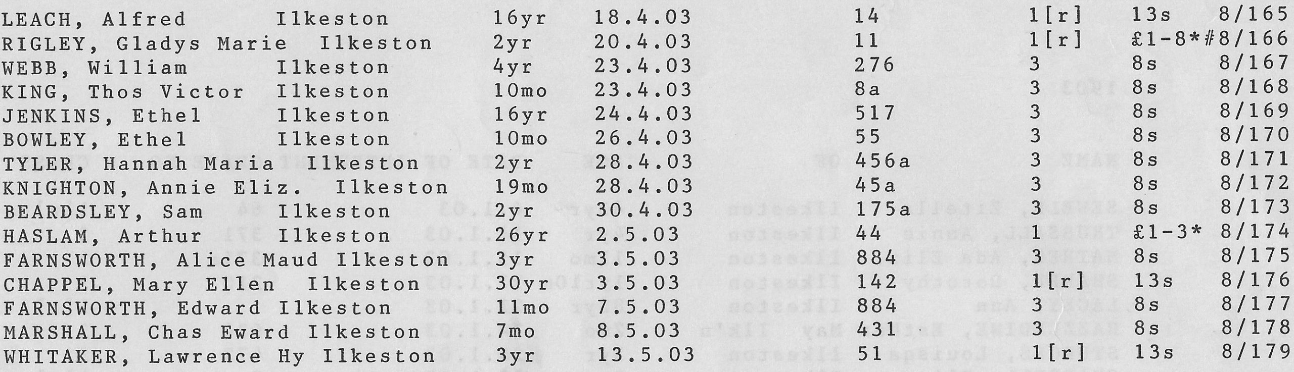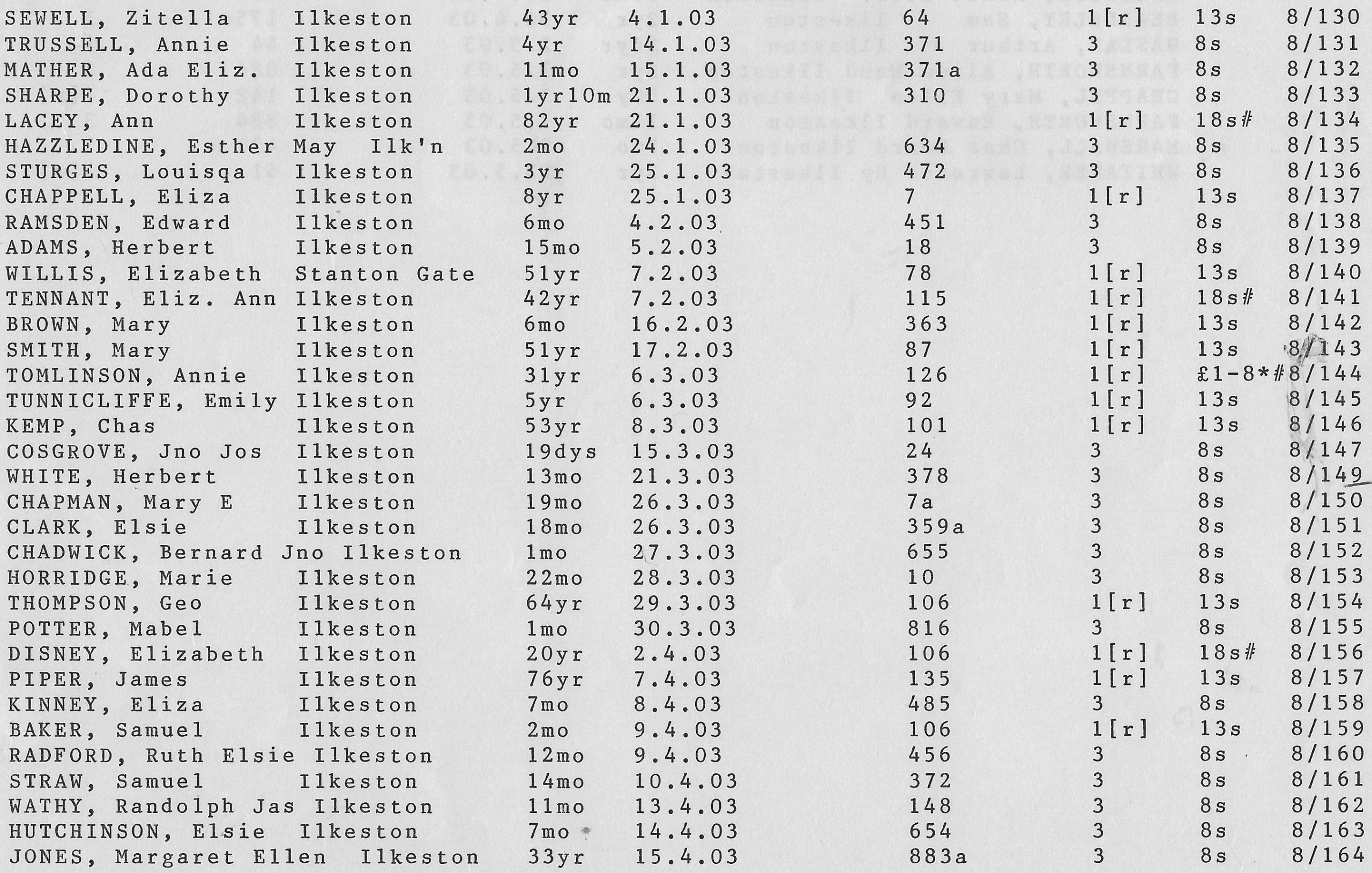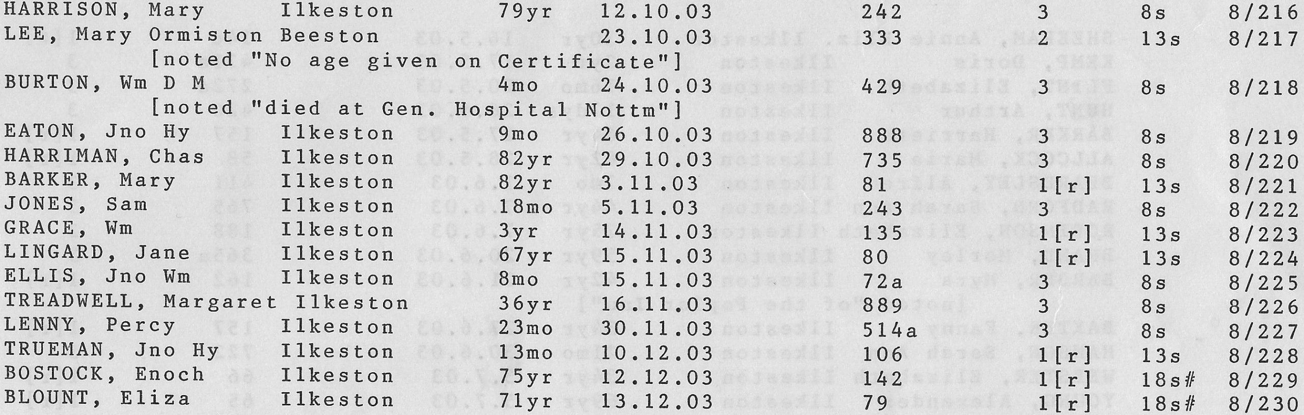 Stanton Road Cemetery burials 1903