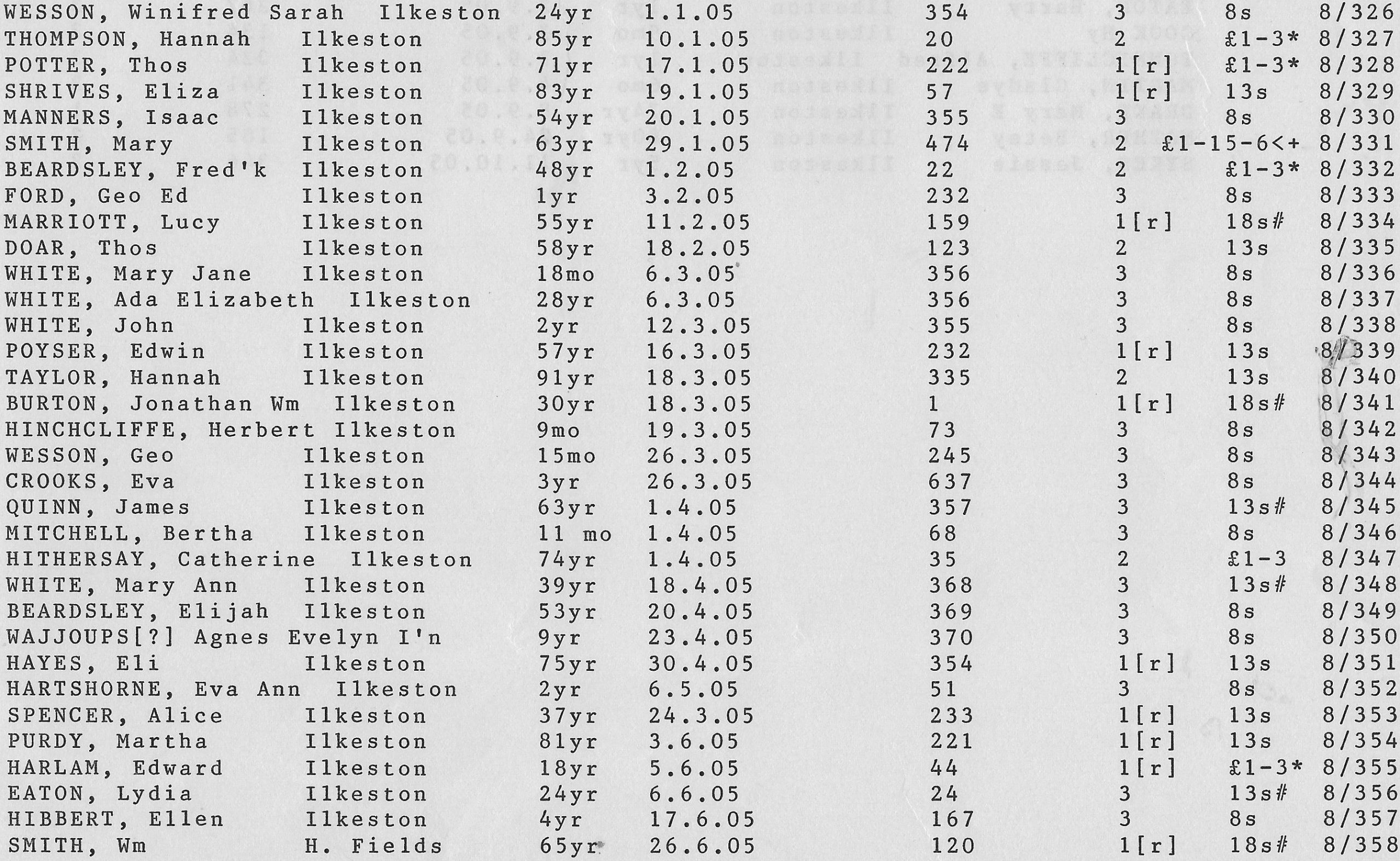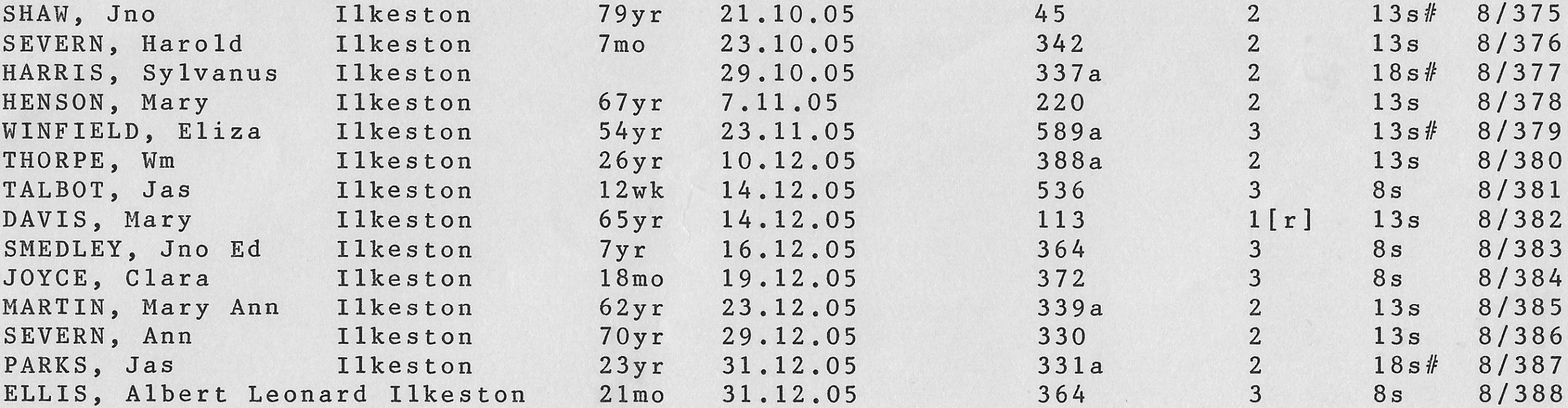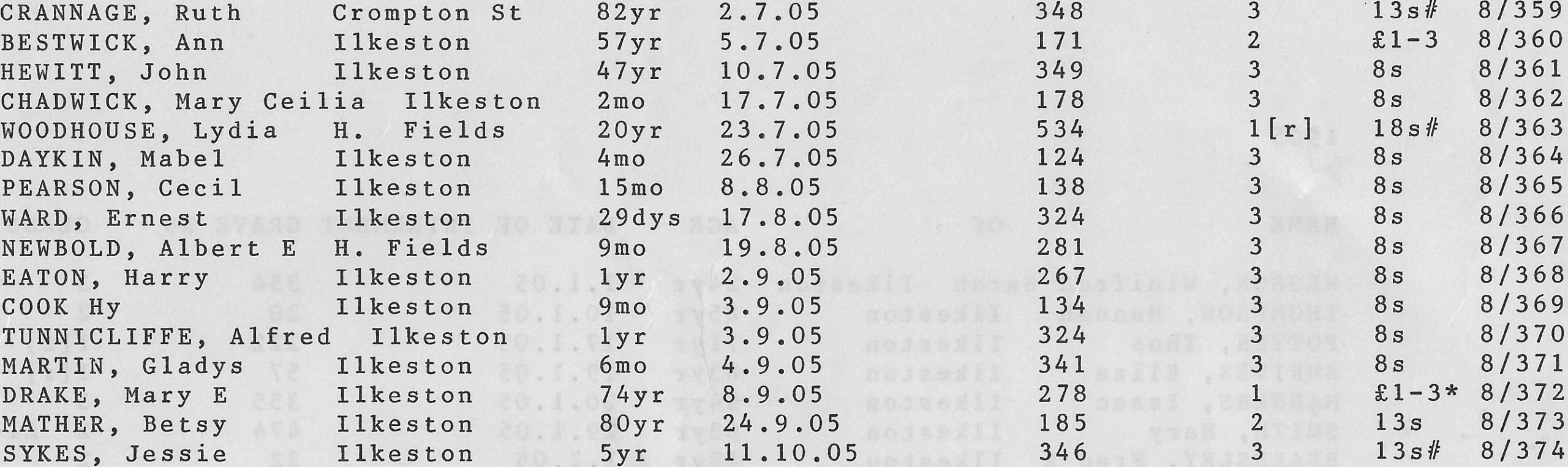 Stanton Road Cemetery burials 1905