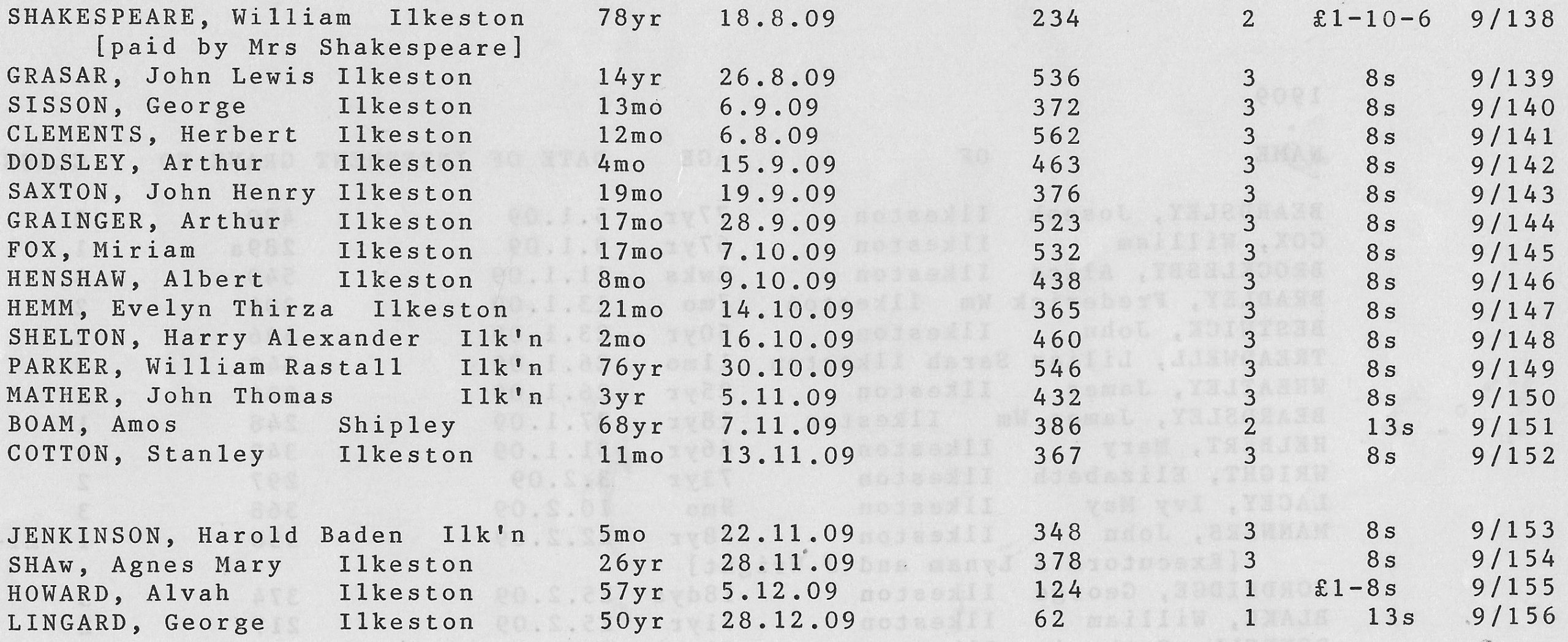 Name Address Age Date of burial Grave No. Class Cost Ref No