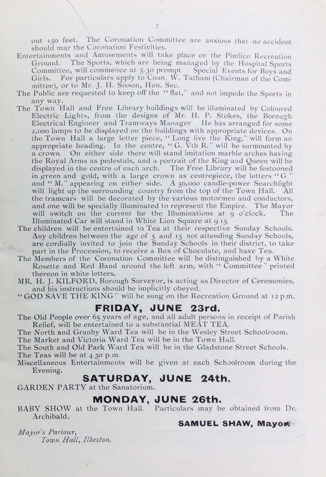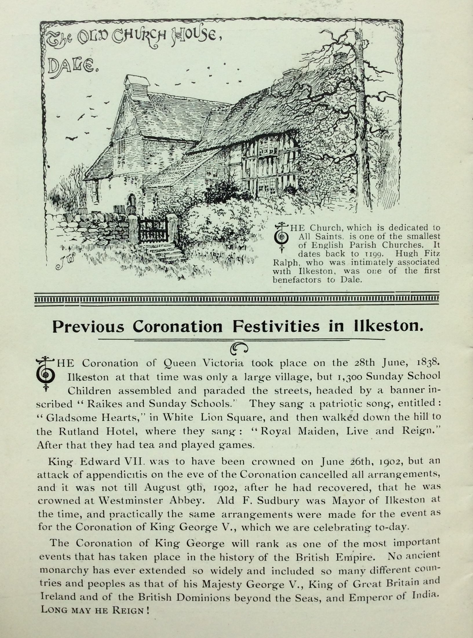 The Coronation of George V and his wife Mary as King and Queen of the United Kingdom and British Empire took place at Westminster Abbey on June 22nd 1911. The Borough of Ilkeston planned a series of activities to commemorate the occasion.