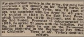 They returned to England on 31st Dec 1875 and finally settled in Chichester. He was now a colour sergeant. They had 14 children, the eldest being Charles Yorke, my great grandfather.”