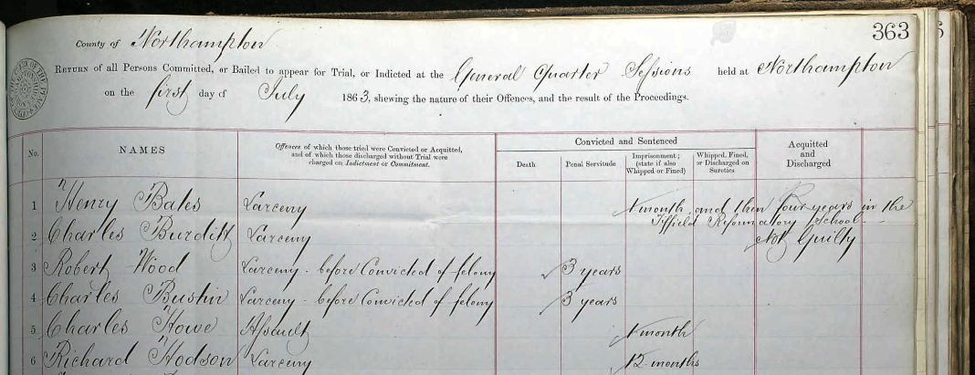 Had Charles left Northampton to escape justice ? In the Northampton Mercury (May 2nd 1863) Charles was recorded as fighting as Duston on June 2nd 1861 (sic) and was remanded on bail for a later trial. That trial took place on July 2nd 1863, at Northamptonshire Midsummer Quarter Sessions, when Charles appeared, charged with committing a breach of the peace by unlawfully fighting a prize fight, and with committing an assault. After that, Charles had left town, possibly (?) going to Derby, vowing never to fight again, and “had made a solemn resolution that he would never be guilty again of the offence with which he was now charged”. However he had been caught and returned to face trial. Despite pleading guilty, the magistrate felt that he had to sentence Charles to a similar term that his ‘companion‘ had previously been given…. as below.