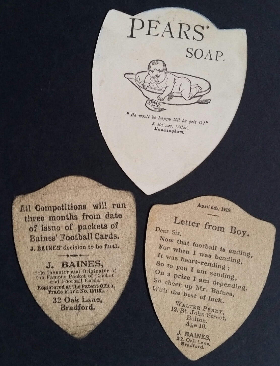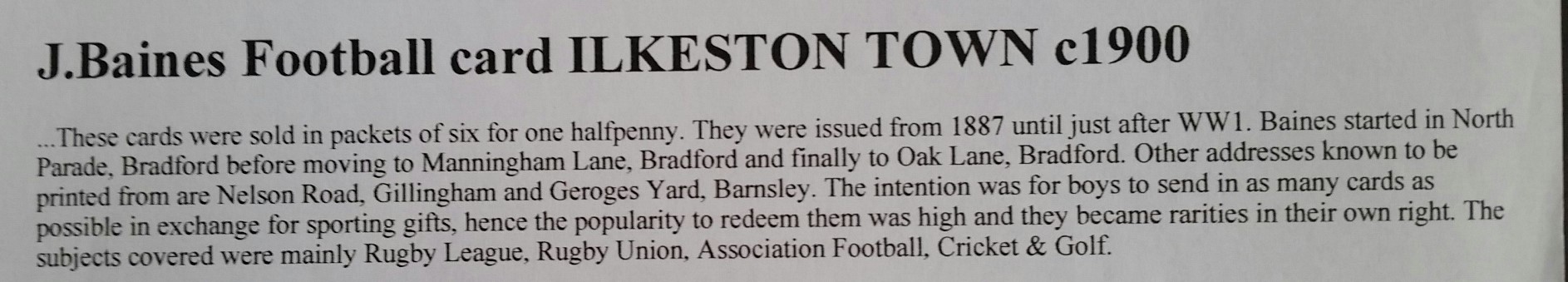 He writes that “J Baines football cards for Ilkeston Town were issued in their thousands for small clubs all over the country.”